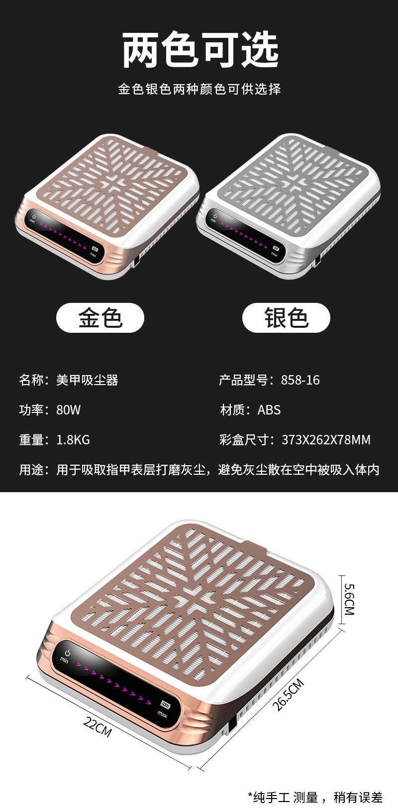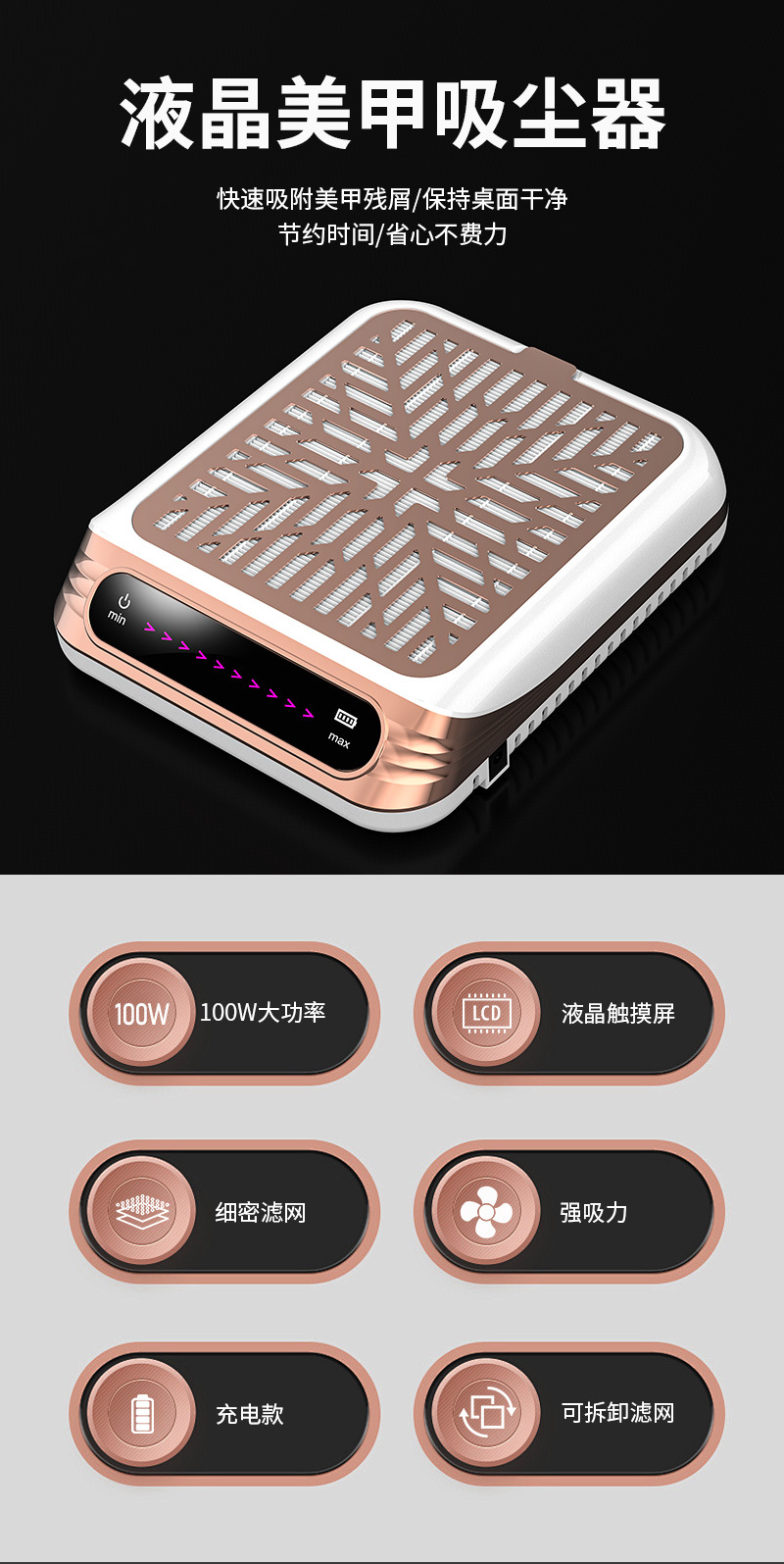 跨境大功率美甲吸尘器低噪音蓄电美甲吸尘机日式大吸力卸甲集尘器