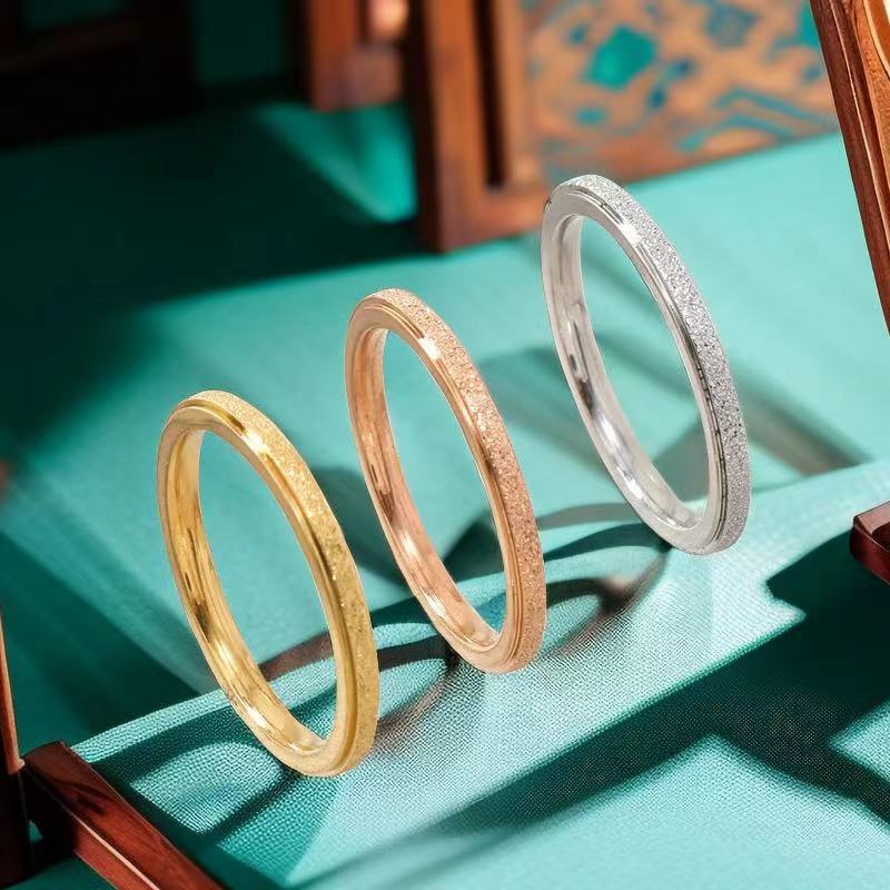 不锈钢戒指女小众高级轻奢ins轻奢风磨砂指环不掉色钛钢饰品批发
