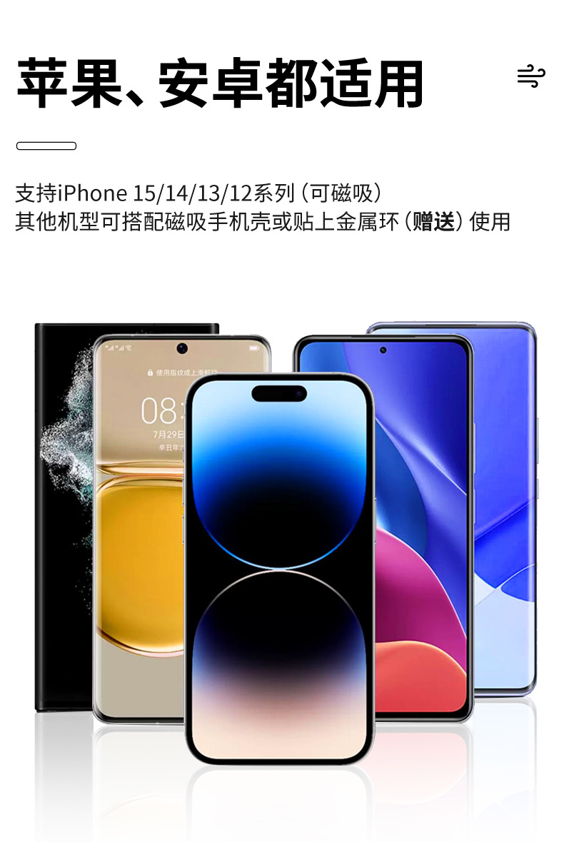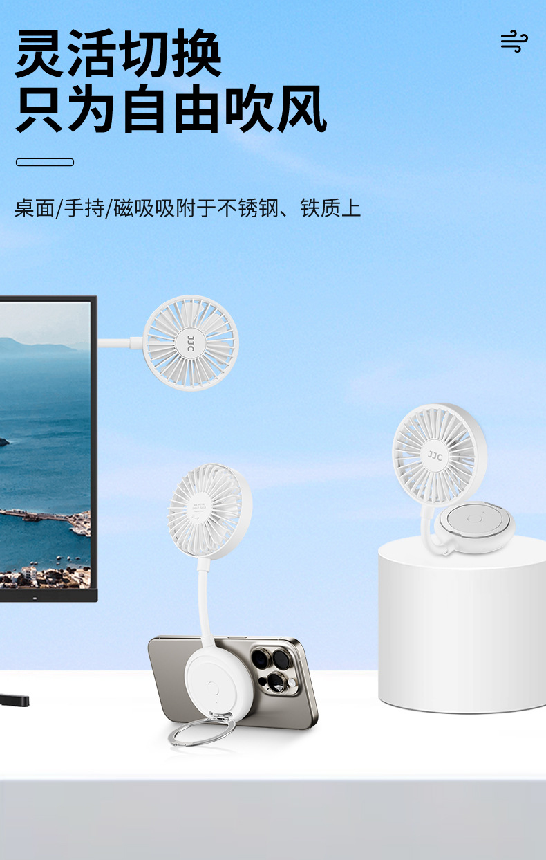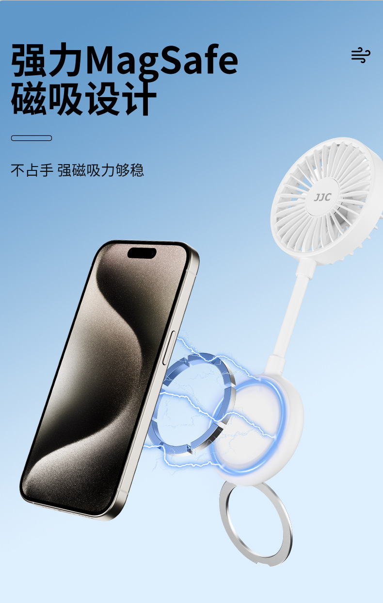 JJC 手机磁吸迷你小风扇MagSafe磁吸自带指环支架手持风扇USB充电