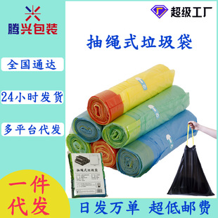 厂家批发家用抽绳垃圾袋加厚彩色自动束口手提式一次性塑料袋子