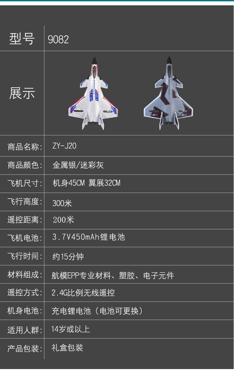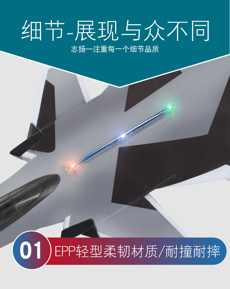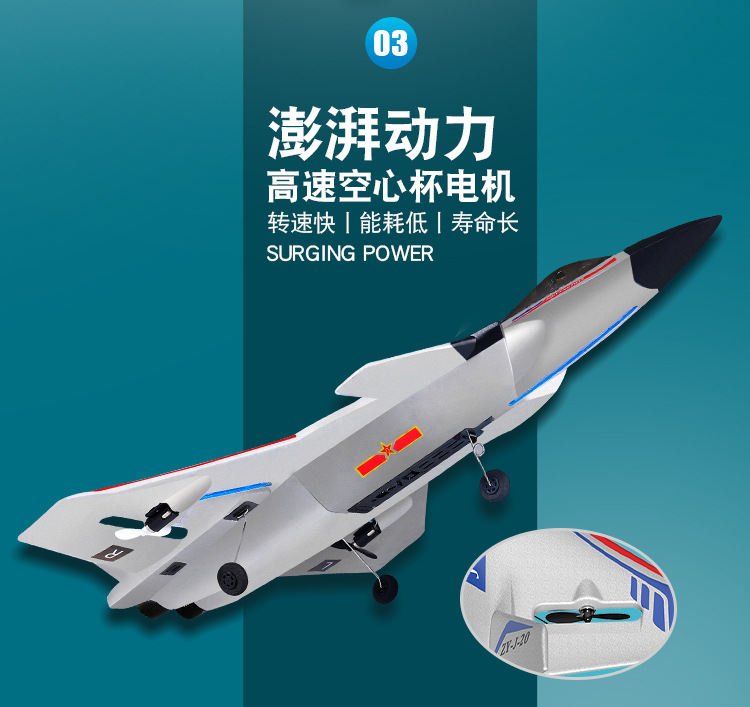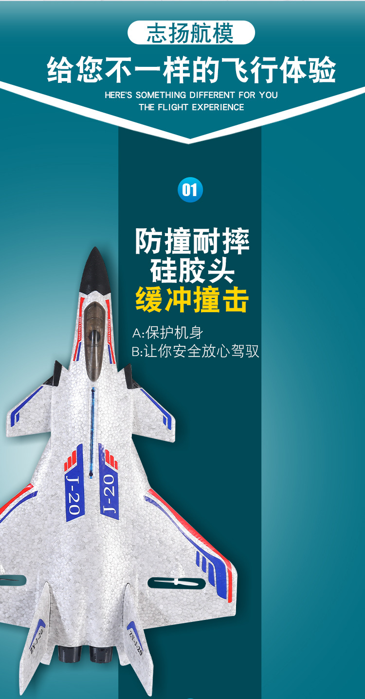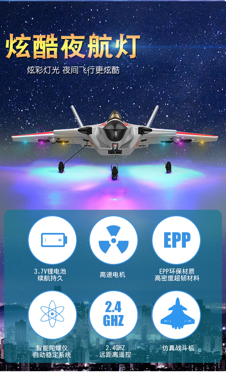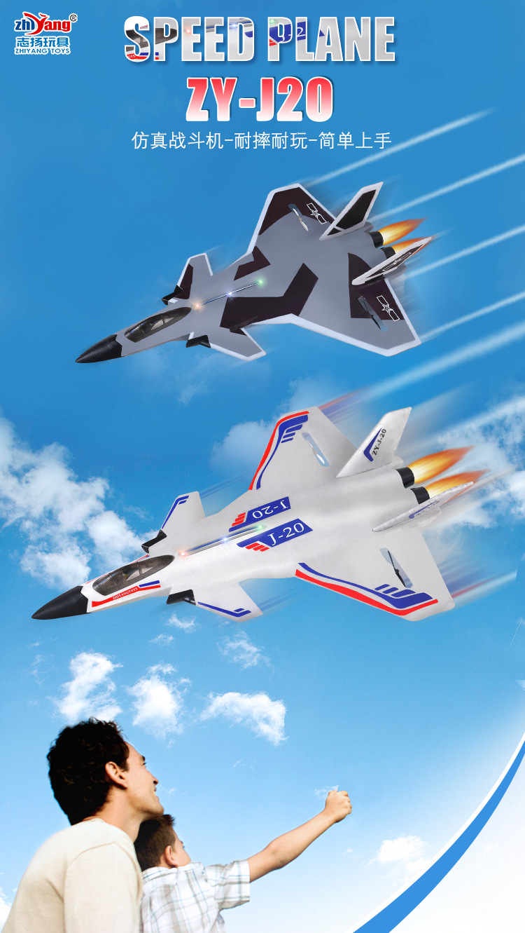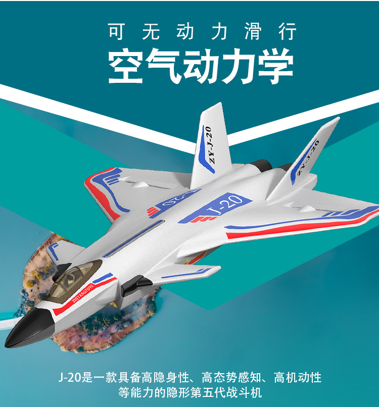 志扬歼ZY-J20遥控飞机滑翔机航模发光泡沫地摊固定翼耐摔玩具