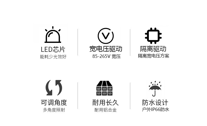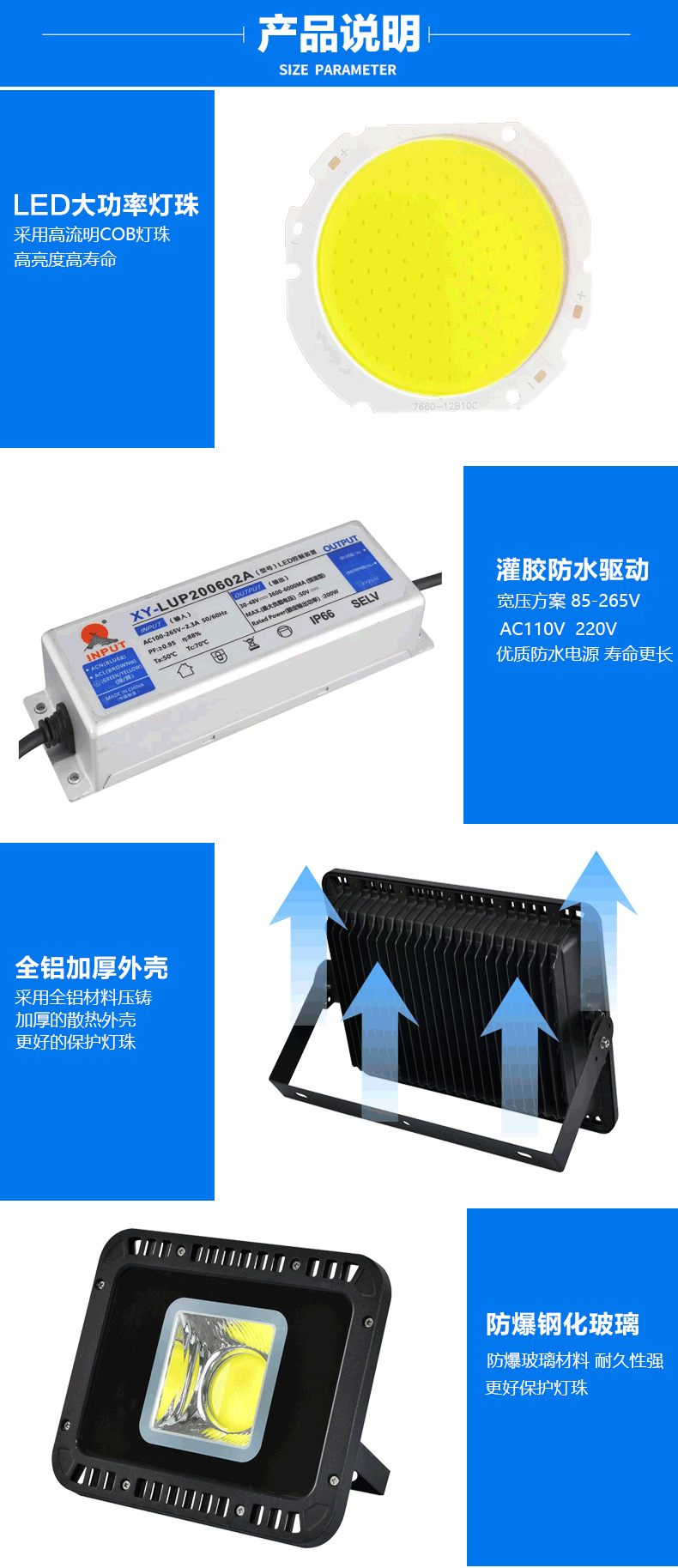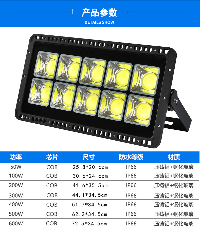 LED投光灯 7070户外防水大功率射灯 85-265V宽压300W400W500W600W