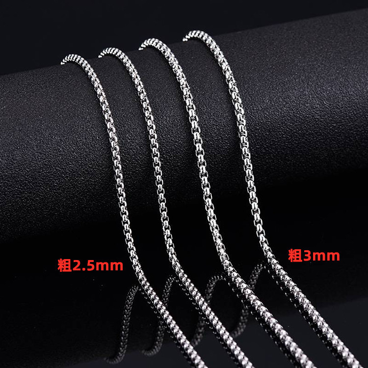 现货批发不锈钢男士项链配链裸链方珍珠配饰韩版锁骨链子饰品配件