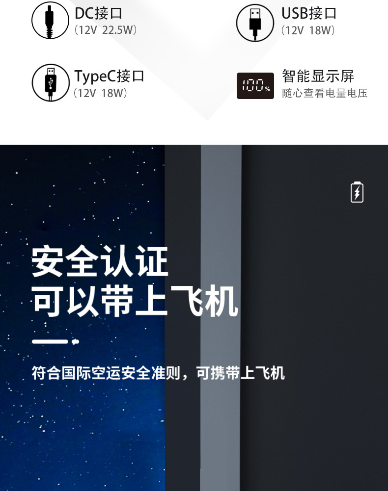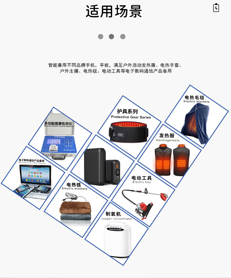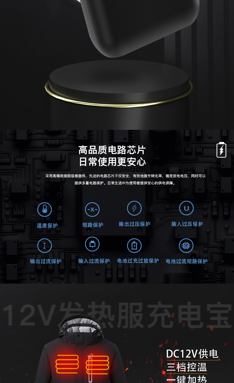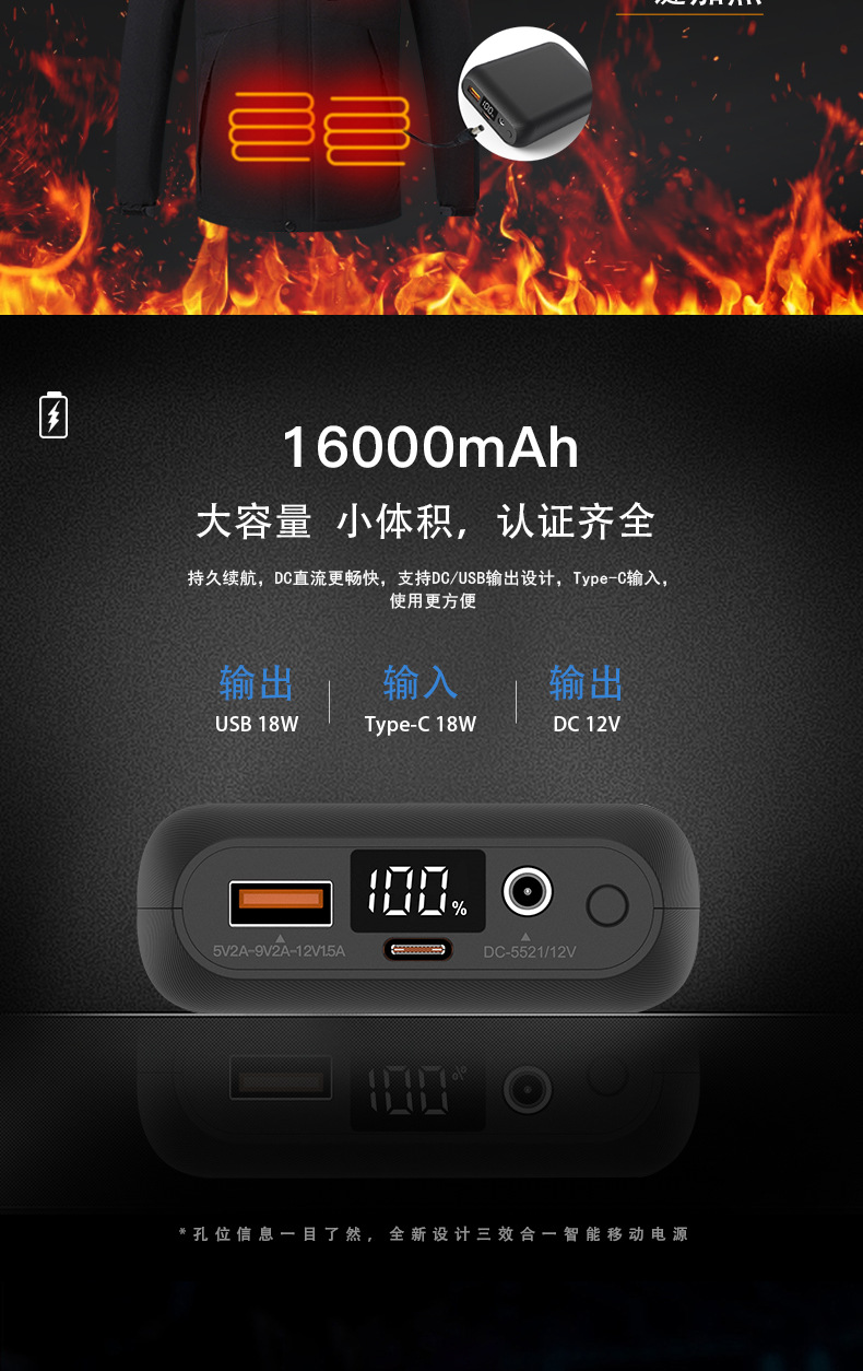 7.4V发热服移动电源DC12V电热服充电宝16000毫安发热马甲背心电池