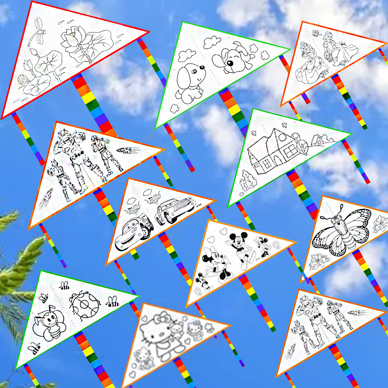 涂鸦风筝diy幼儿园绘画新款卡通儿童手工涂色制作材料包批发摆摊
