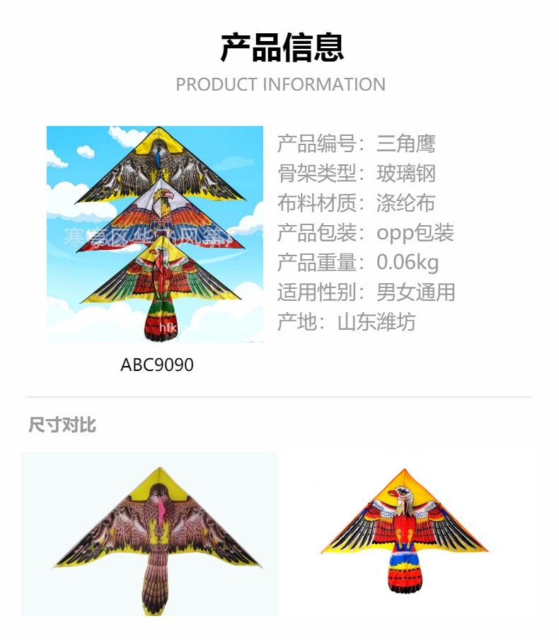 多规格多图案 三角老鹰风筝潍坊批发 儿童成人微风易飞 活动游玩