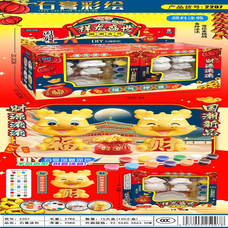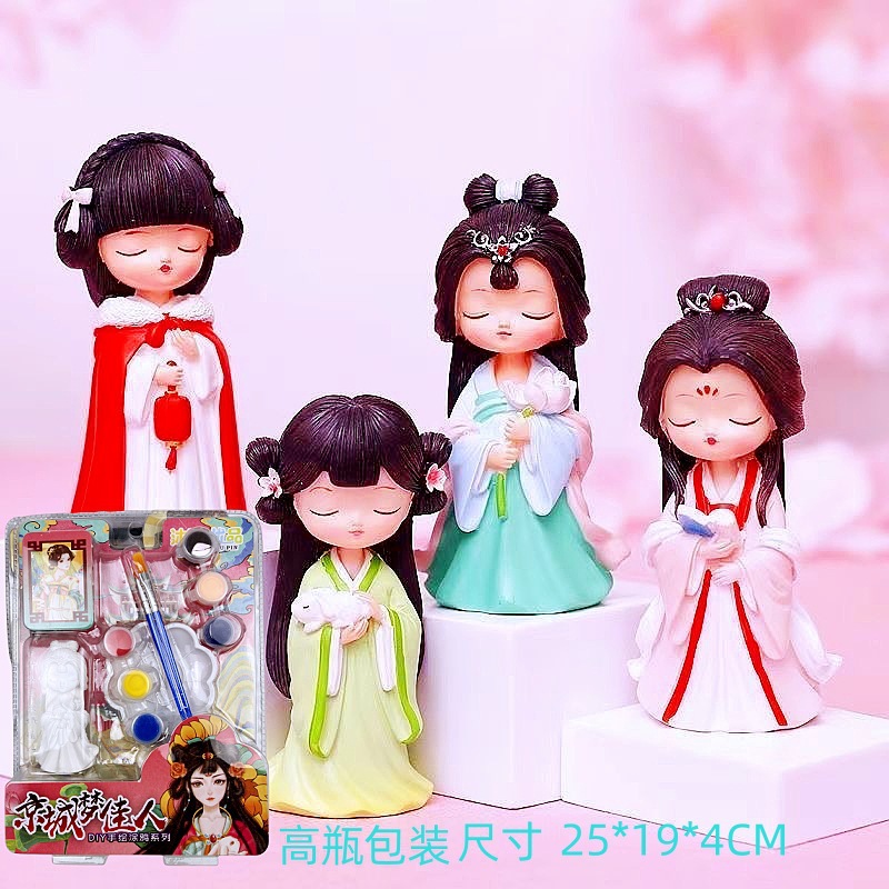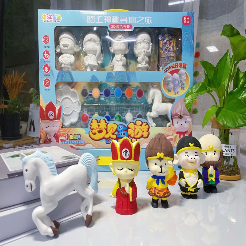 儿童3D立体彩绘画画石膏娃娃涂鸦DIY手工涂色浮雕画白胚玩具批发