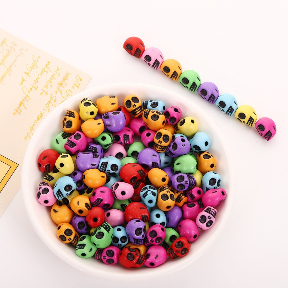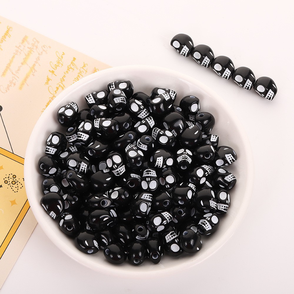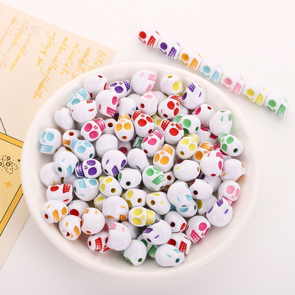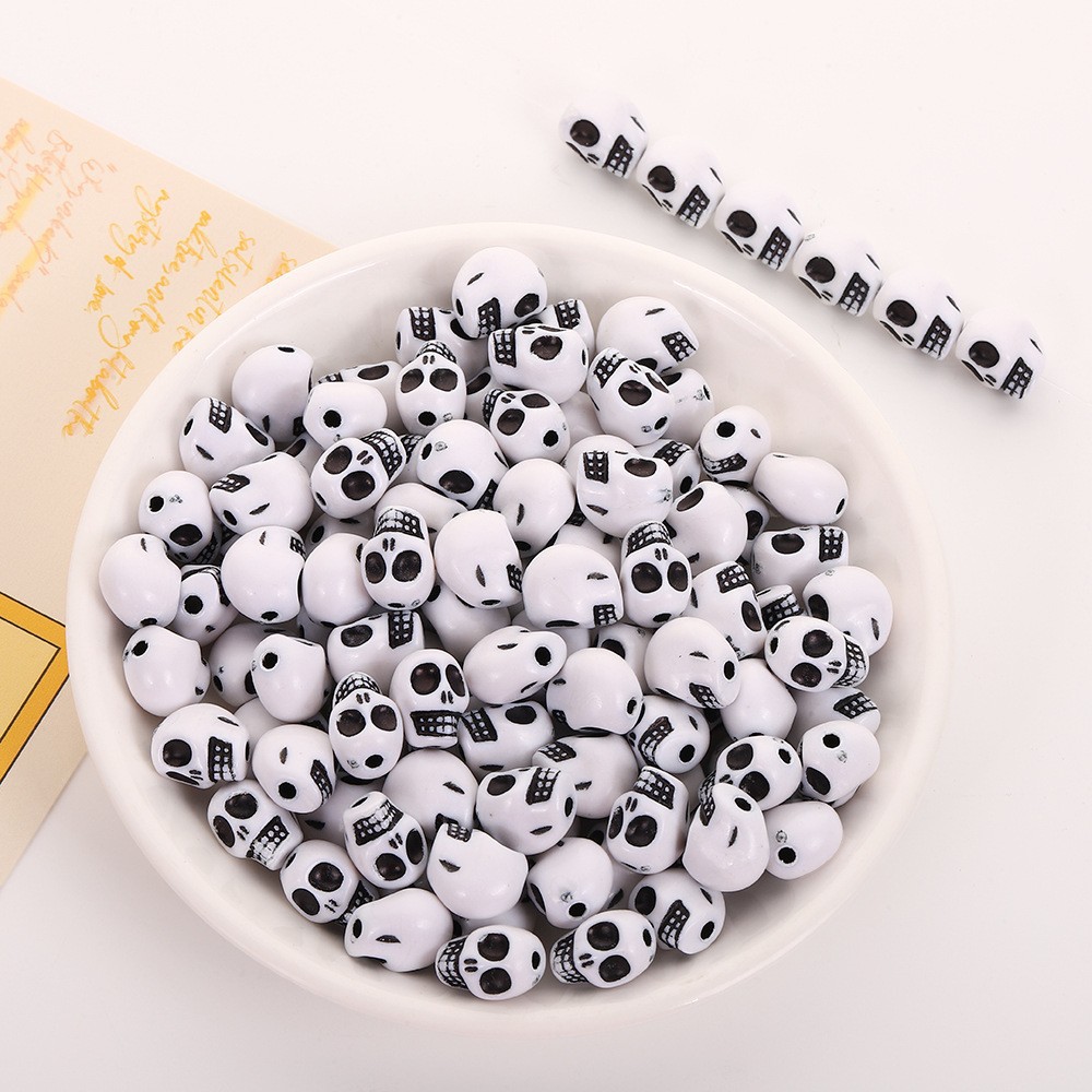 跨境万圣节珠子彩色骷髅头散珠亚克力直孔串珠手工DIY饰品配件