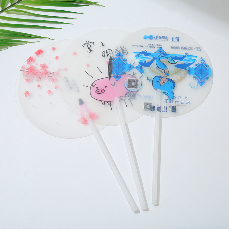 创意ins风卡通手摇扇子 学校招生宣传卡通广告团扇 塑料扇子