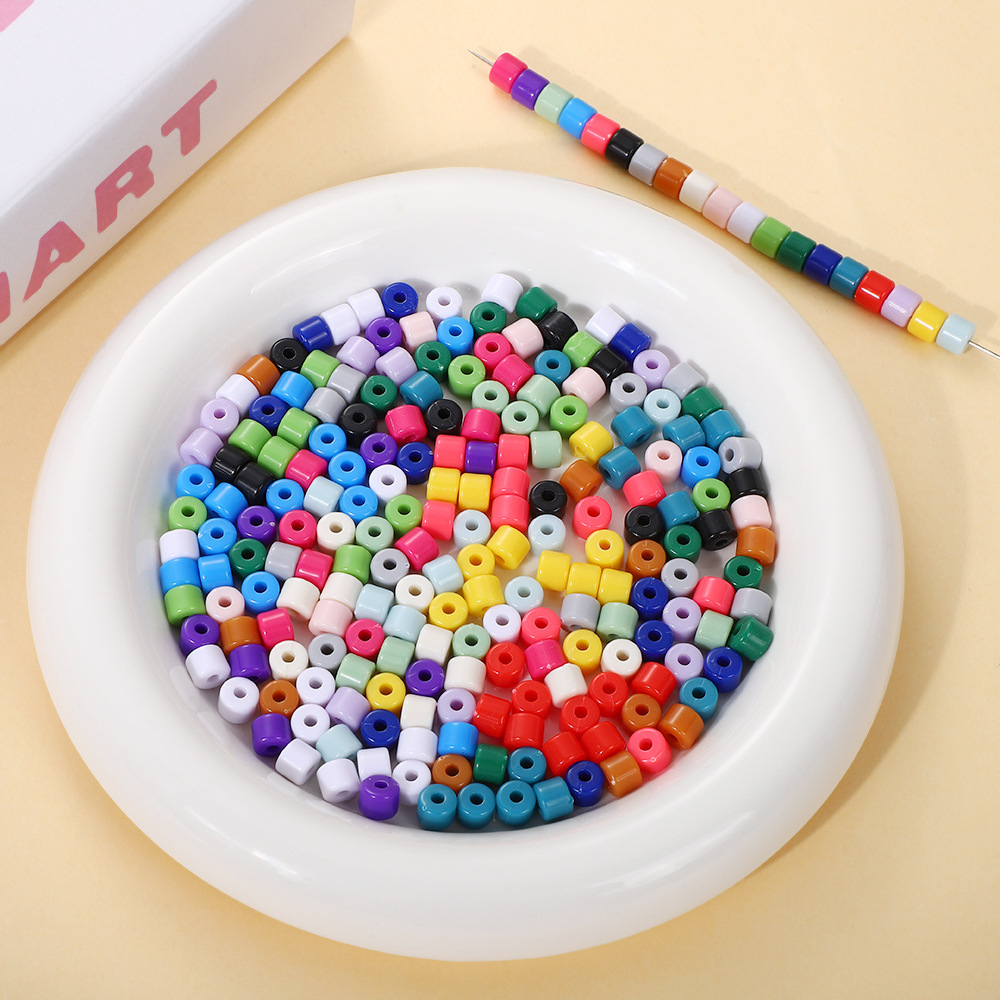 6mm彩色亚克力圆柱桶珠串珠实色DIY手机链包链手工饰品配件材料