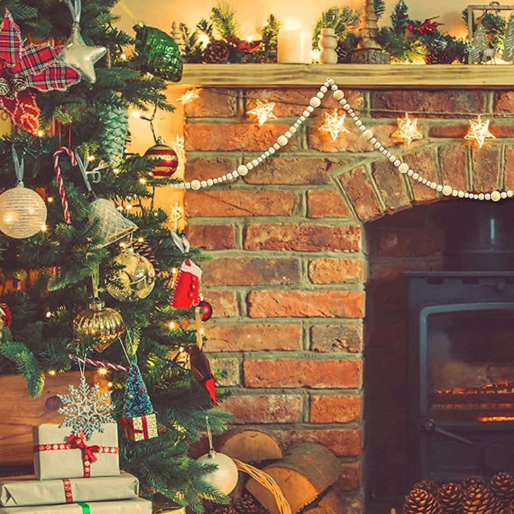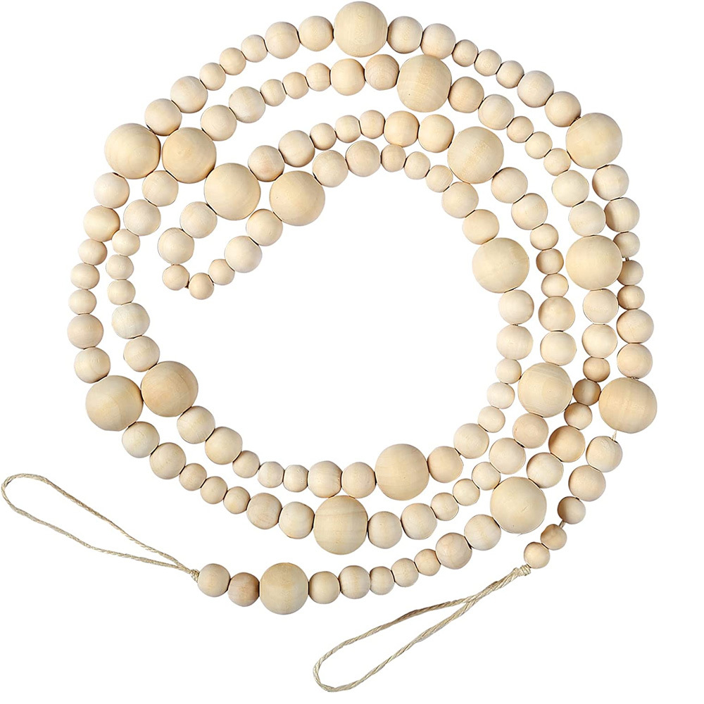 圣诞节原木色木珠串装饰挂件 圣诞木制品装饰套件 圣诞节日装饰挂