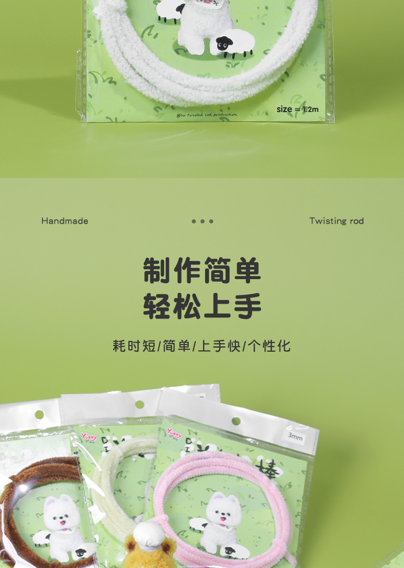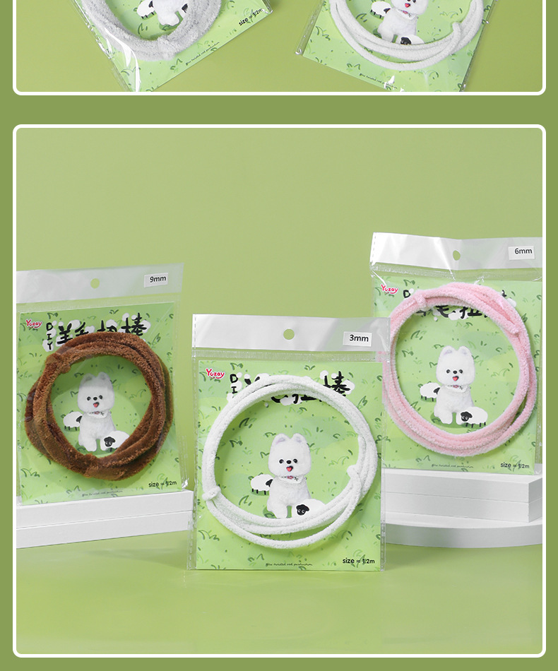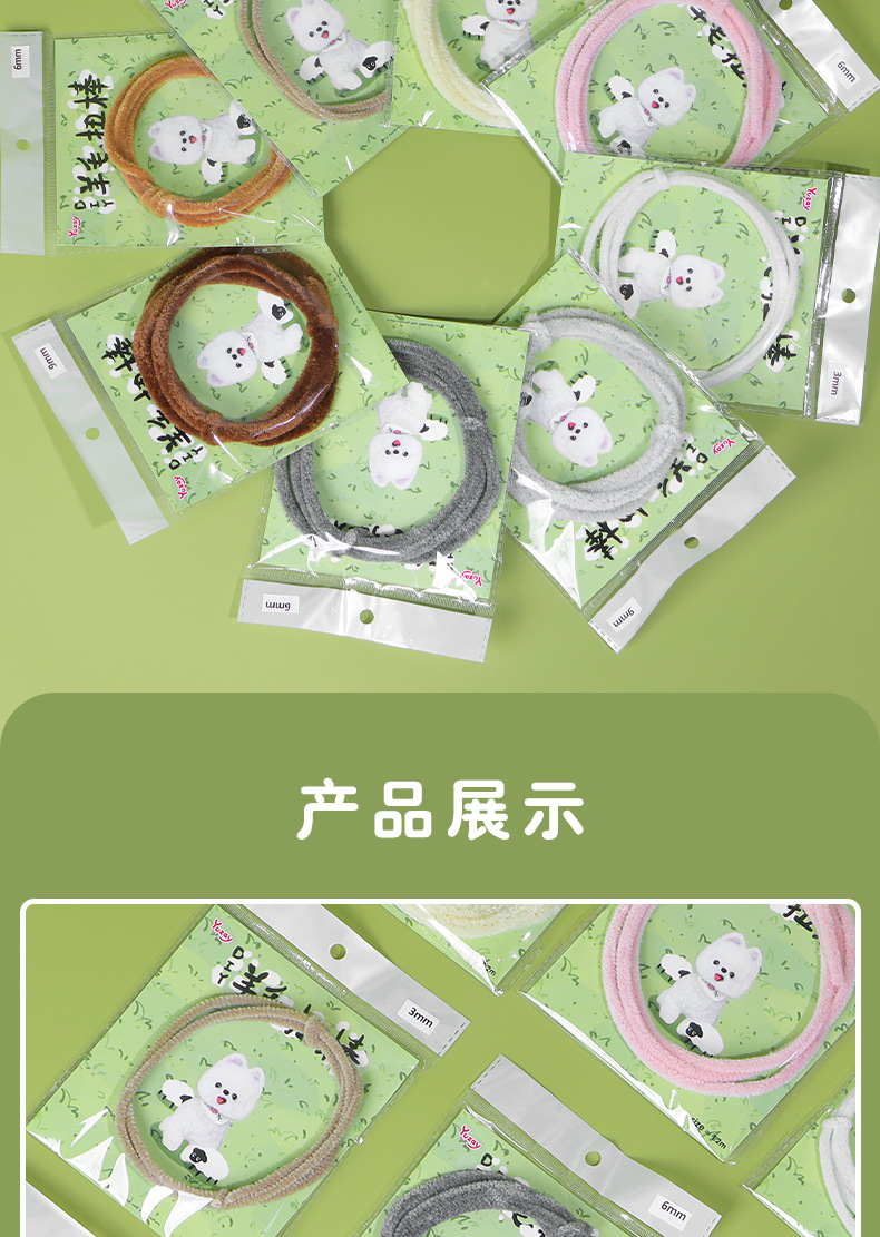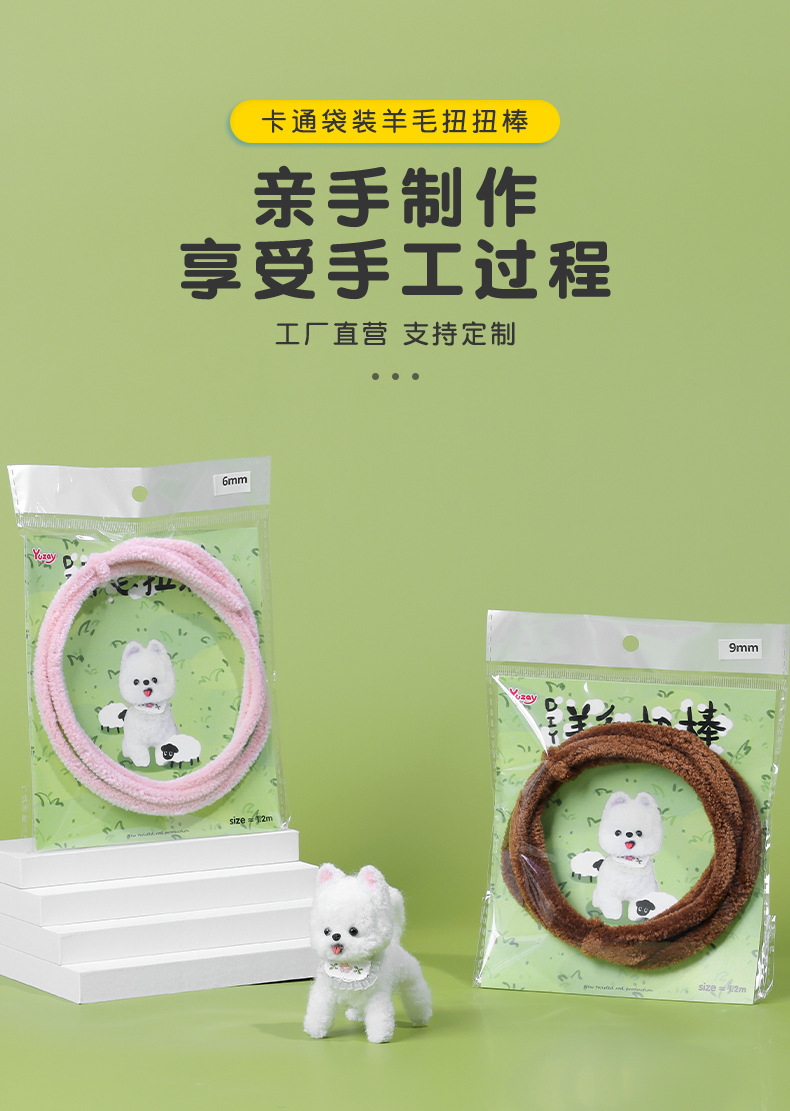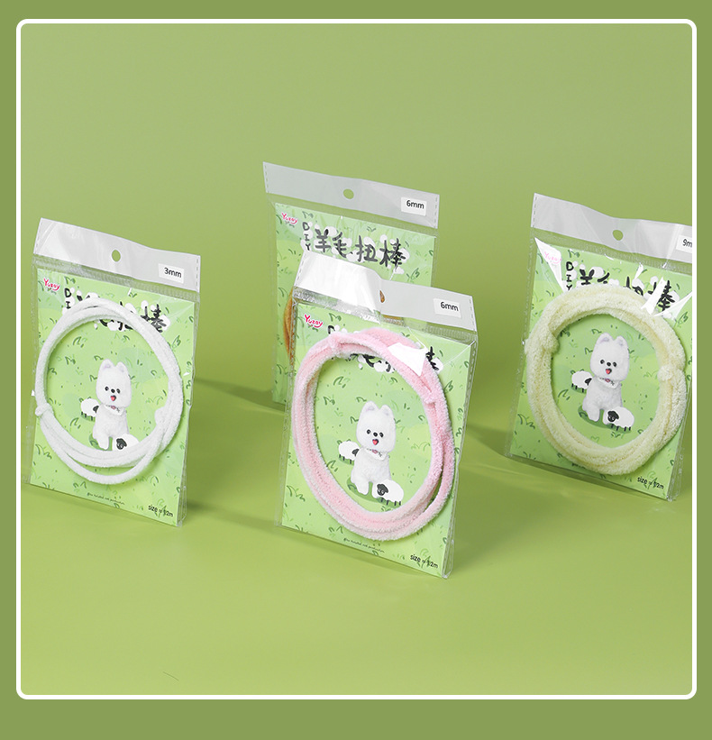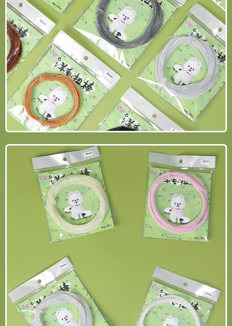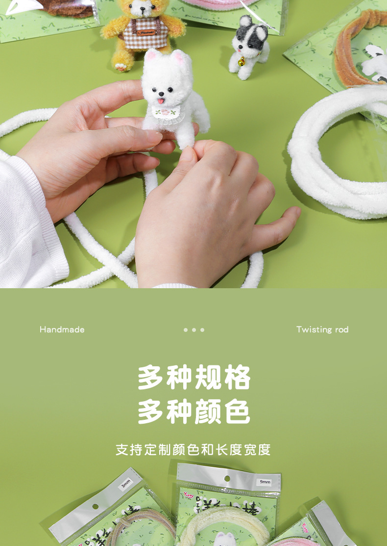 跨境源头厂家日韩热销9mm羊毛扭扭棒超密毛绒条手工diy玩偶小狗龙