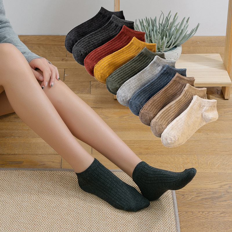袜子女士夏季新款日系抽条船袜女纯色透气棉质短袜诸暨袜业批发