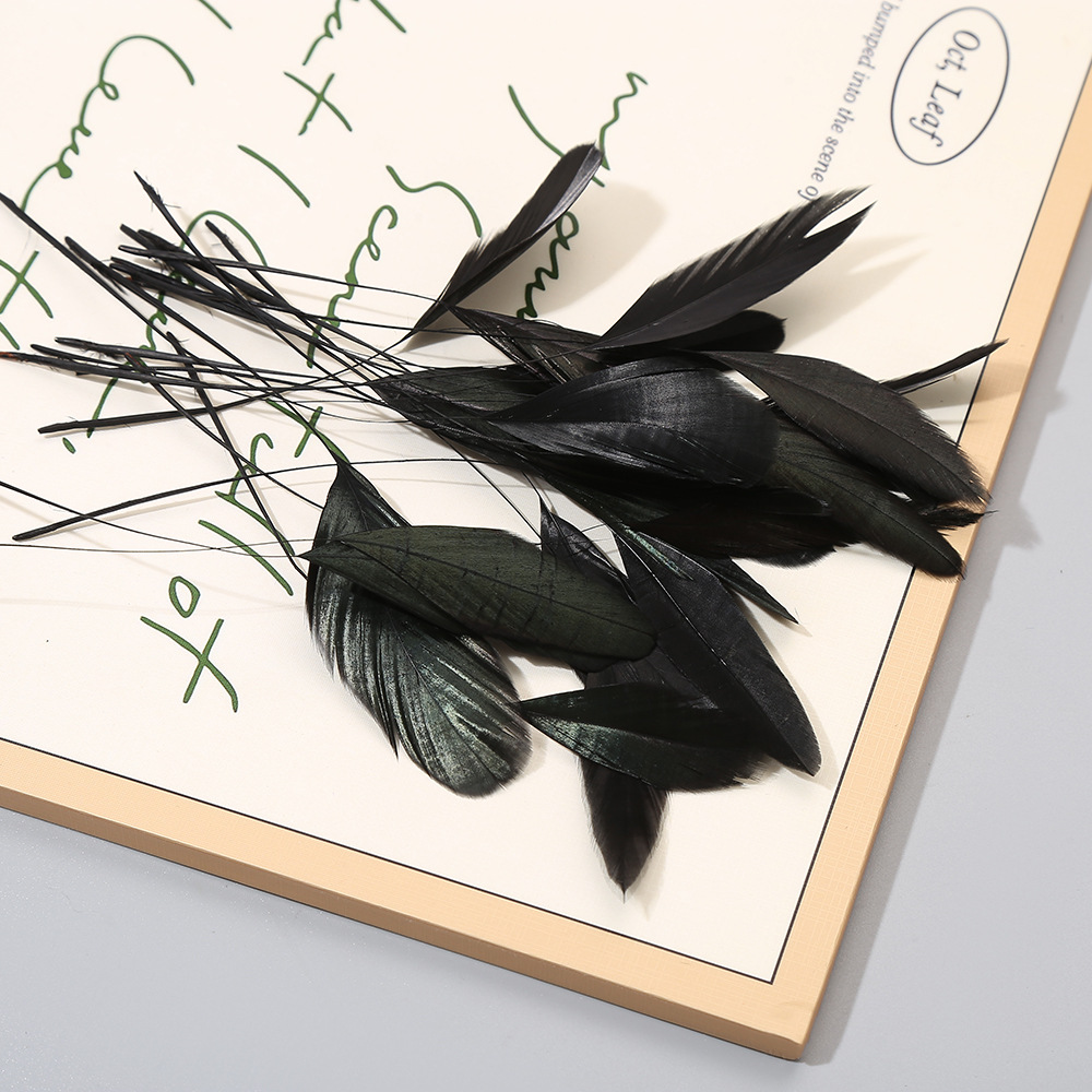 天然羽毛公鸡毛 撕黑尾羽毛头花饰品羽毛 黑色DIY手工羽毛