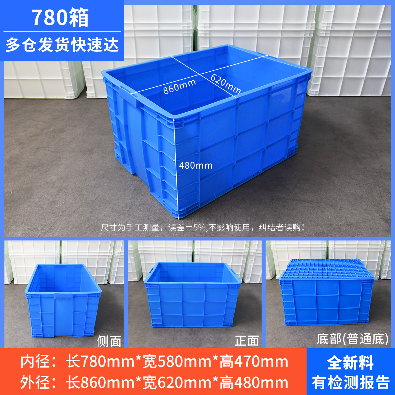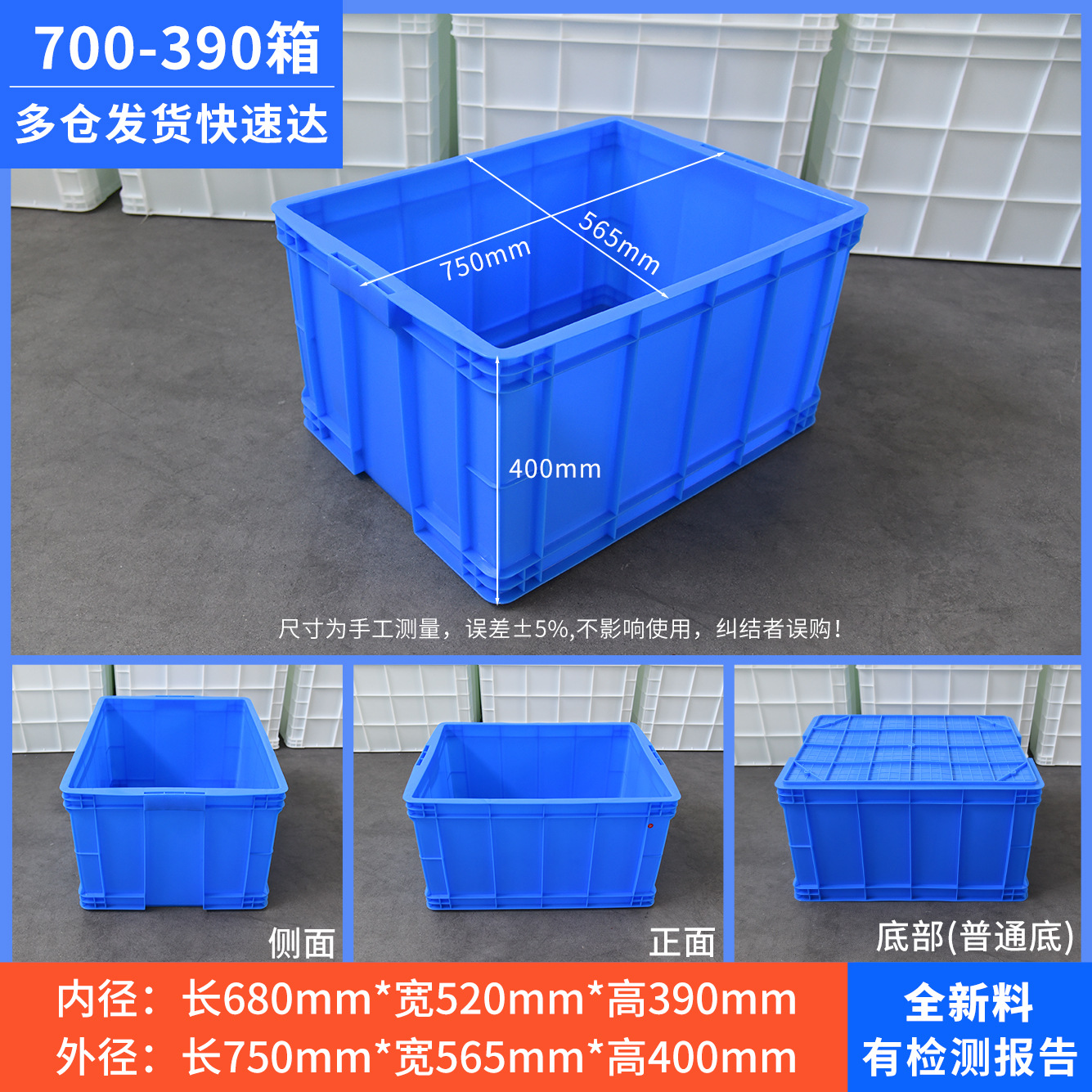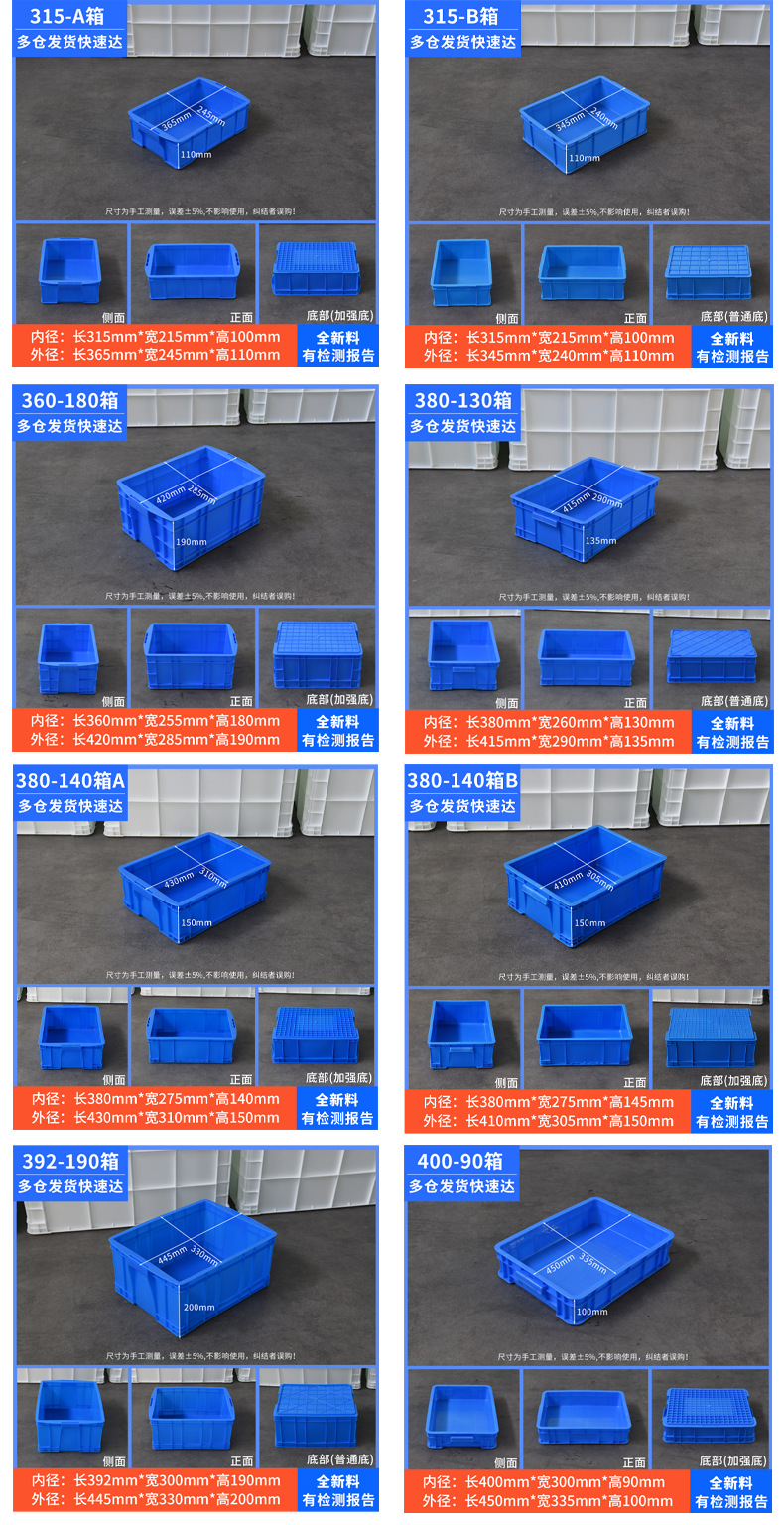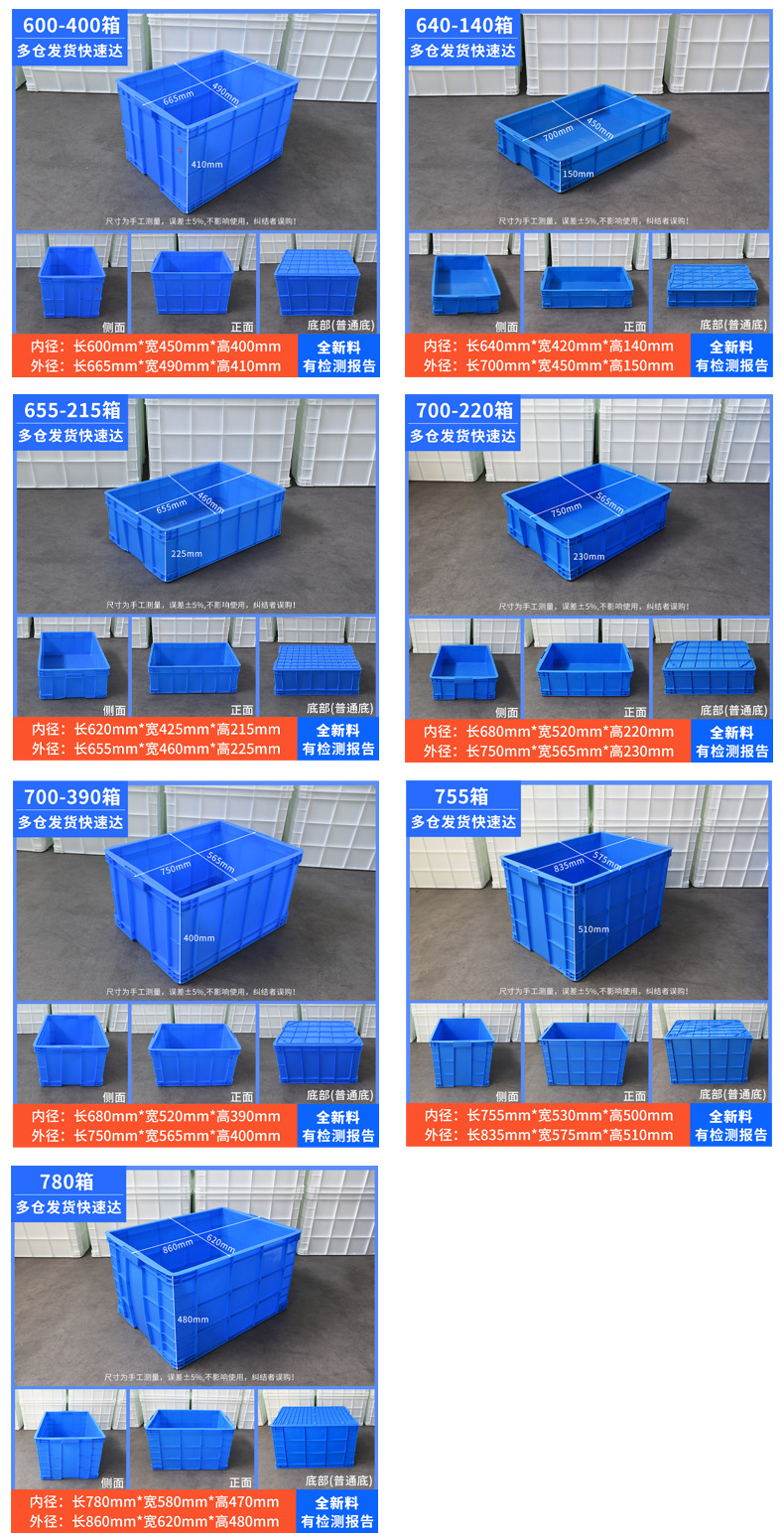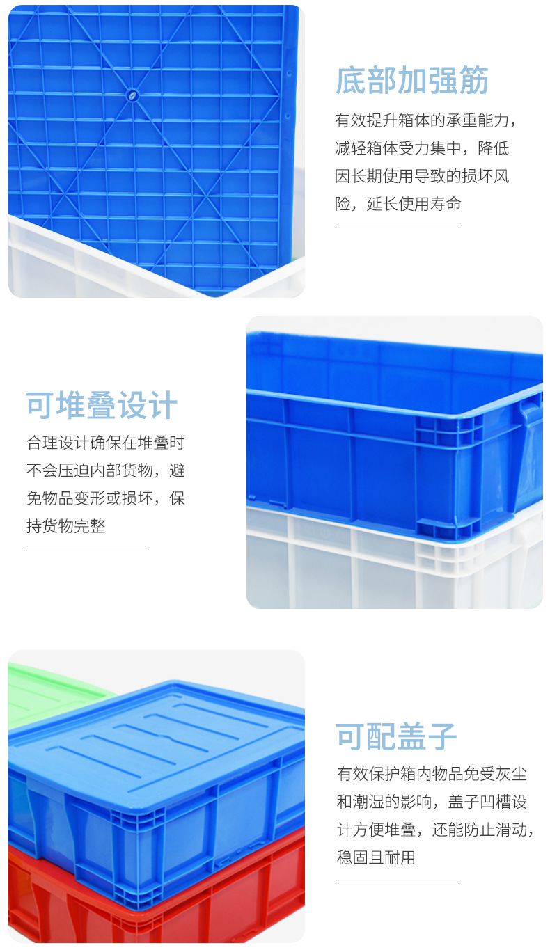 加厚塑料周转箱厚款带盖胶框大号工业用蓝色塑胶中转箱厂家批发
