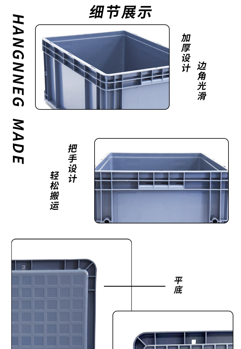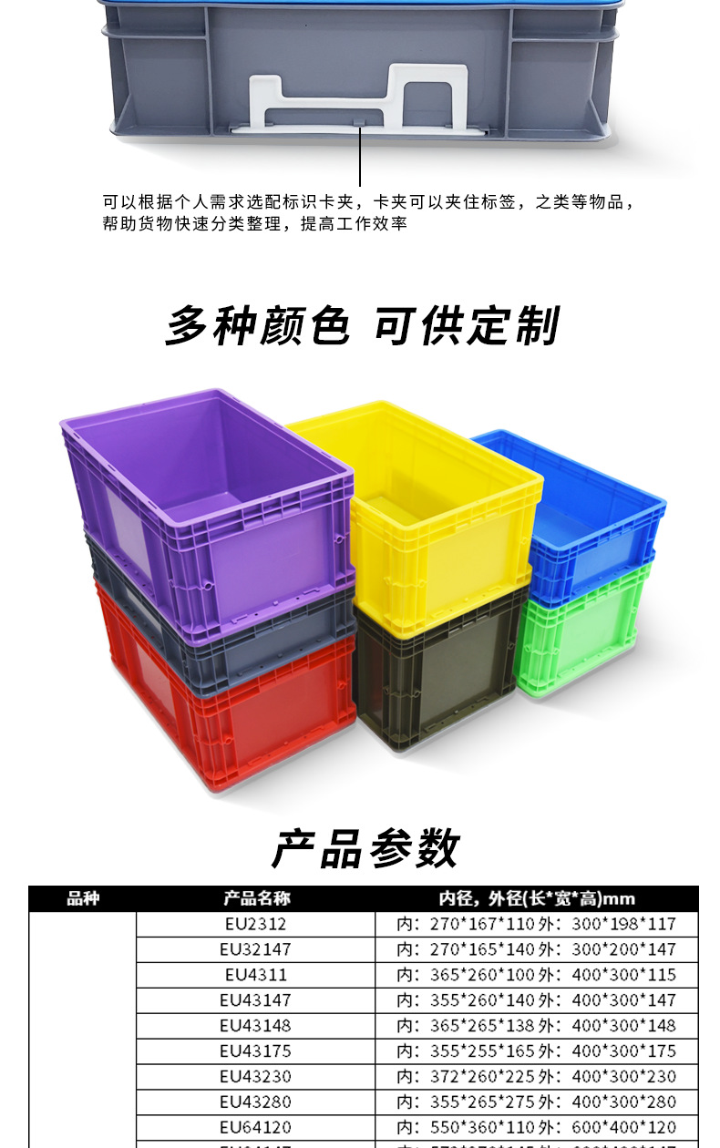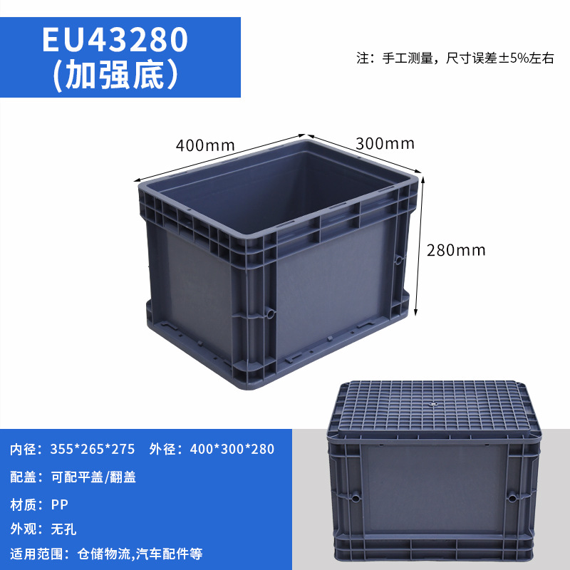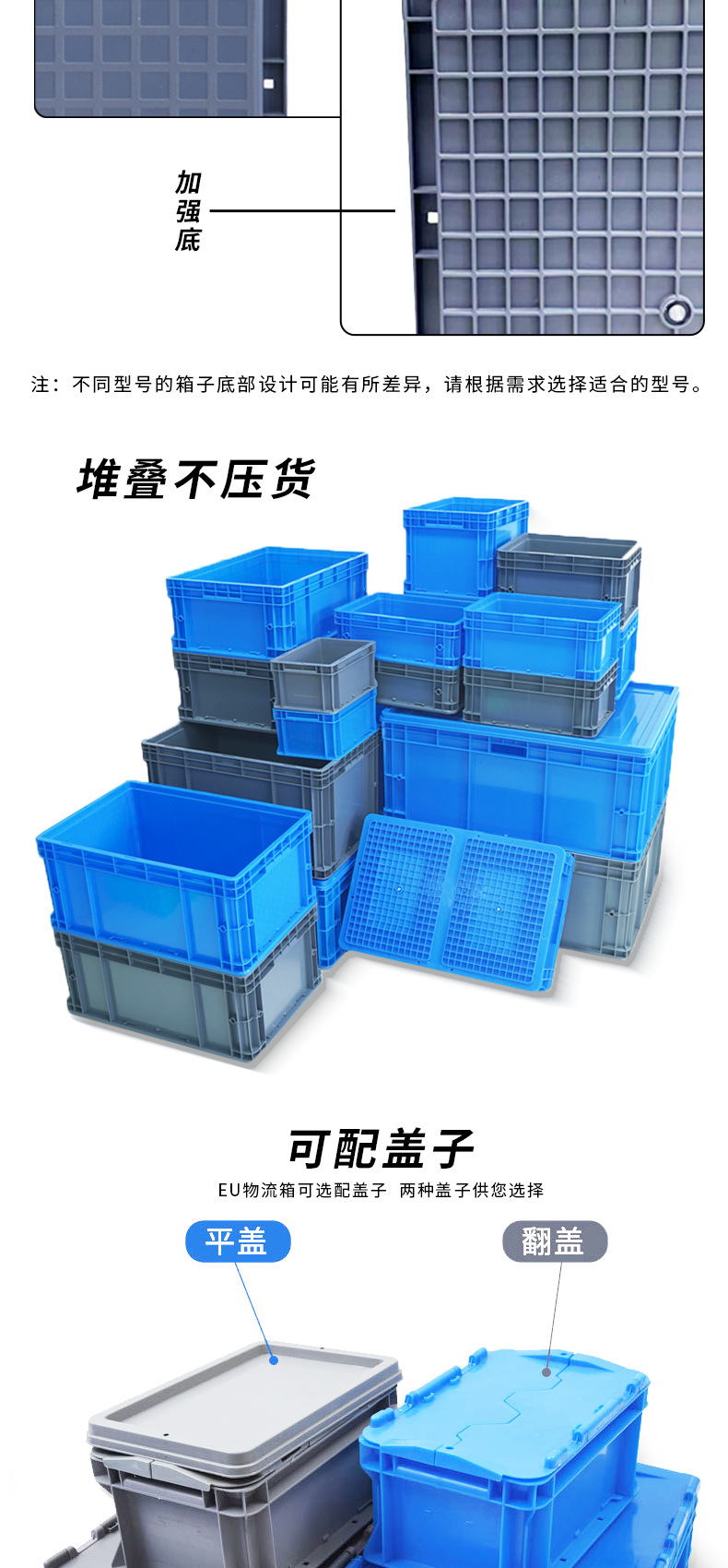 欧标eu物流箱周转箱汽配电子零件可配平盖翻盖工业中转塑胶箱厚款