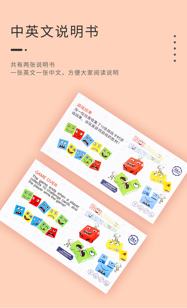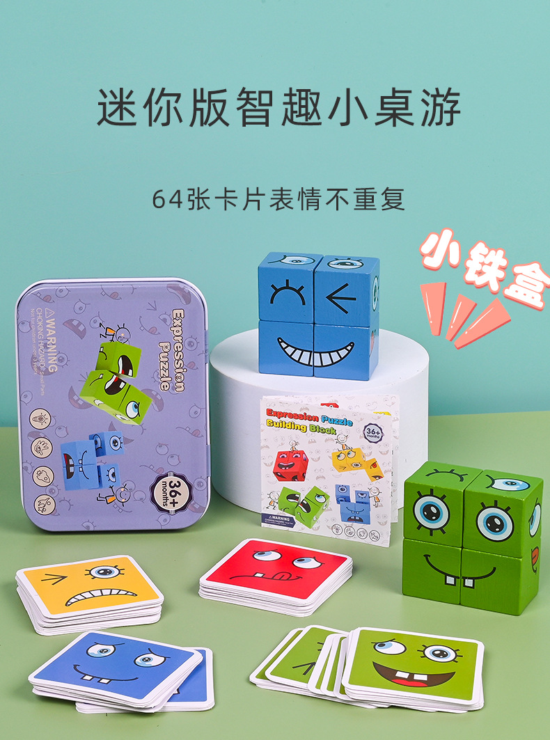 表情变脸魔方积木铁盒儿童对战款玩具 亲子桌游木制挑战关卡玩具