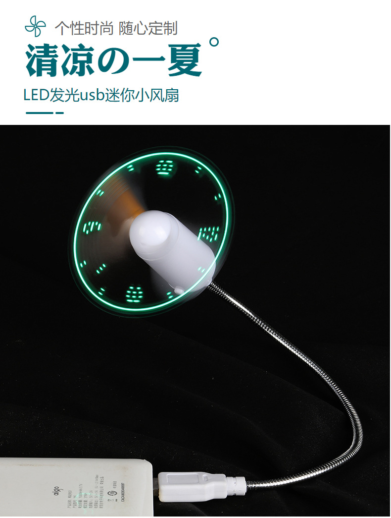 厂家供应创意仿时钟USB风扇仿时间USB发光时钟风扇LED显字小风扇