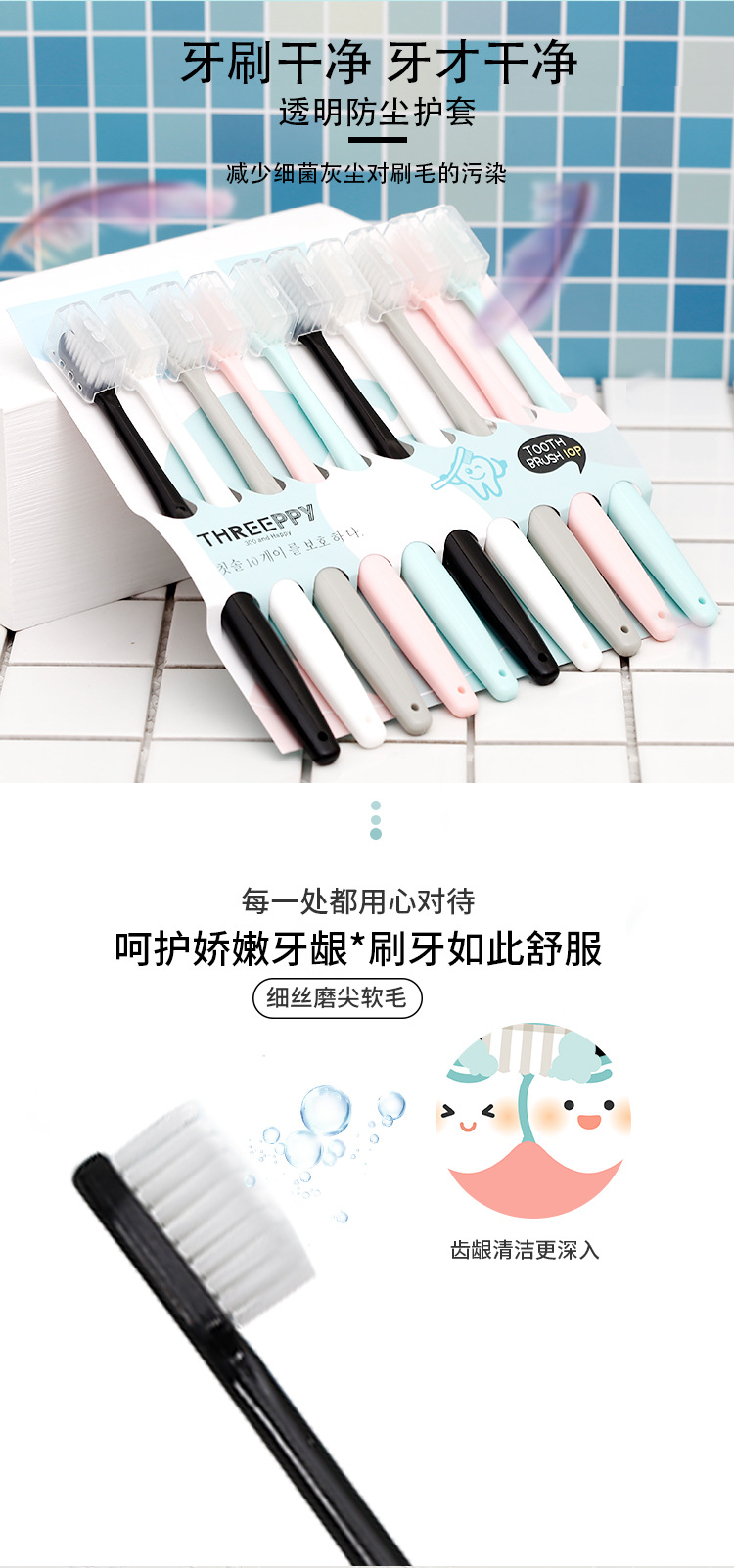 LERCH冰淇淋10支袋装牙刷 马卡龙小头软毛防尘盖牙刷源头厂家批发