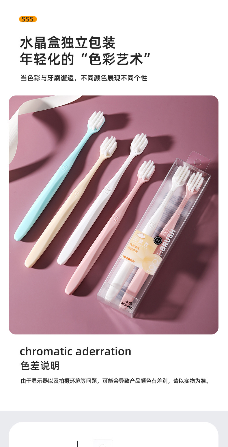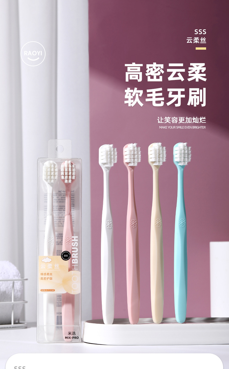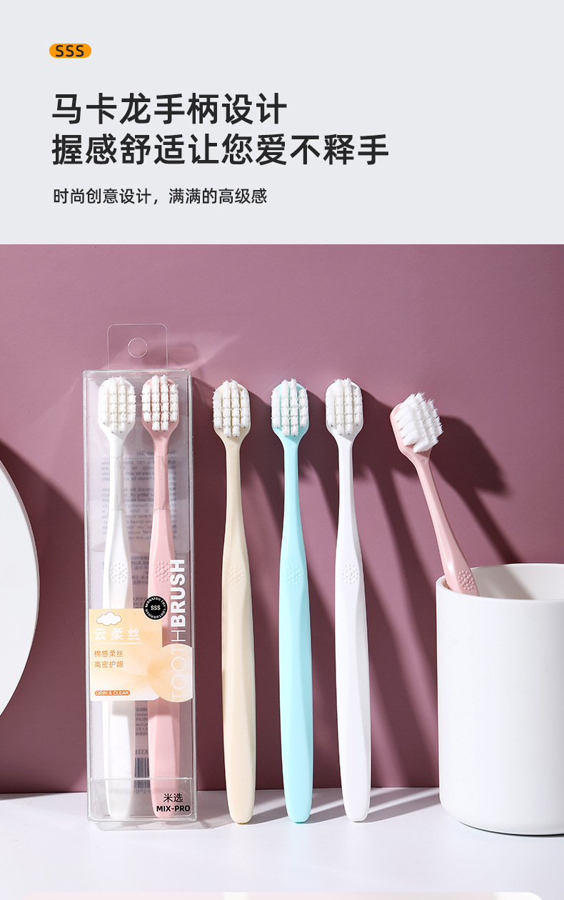 高密云柔情侣牙刷两支装家用款小清新色系软毛宽头牙刷厂家现货