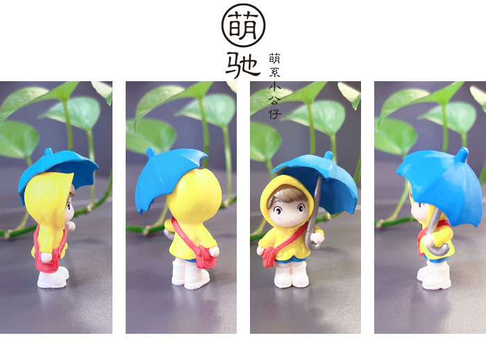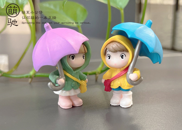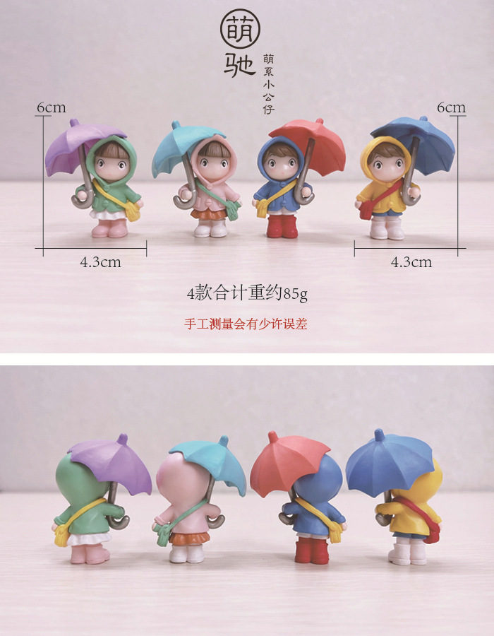 4款打伞情侣摆件 蛋糕烘培装饰PVC挎包雨伞情侣公仔居家摆件手办