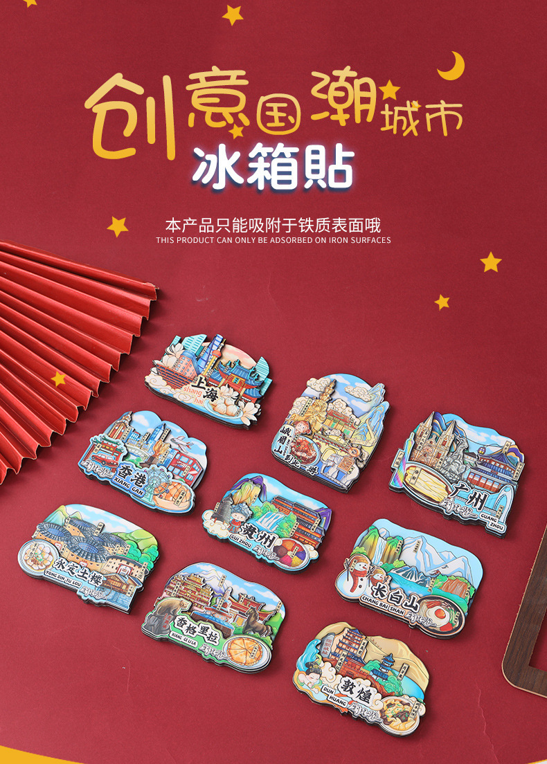【辽宁系列】大连沈阳葫芦岛木质磁吸冰箱贴文创3D立体卡通磁性贴