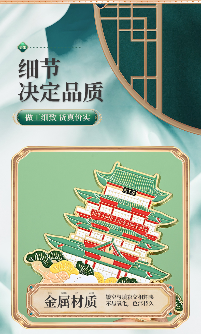 原创南昌滕王阁金属冰箱贴现货中国风磁铁冰箱贴景区伴手礼纪念品