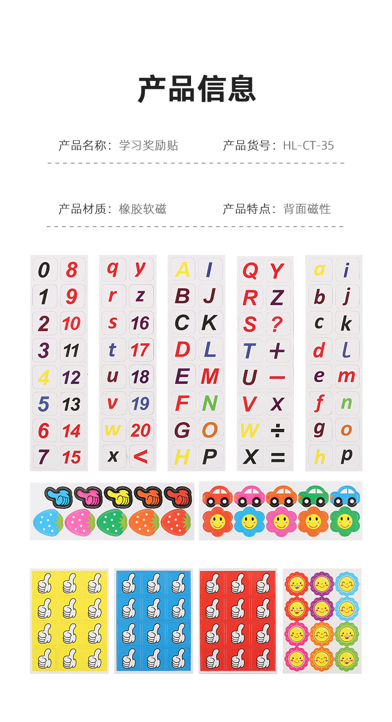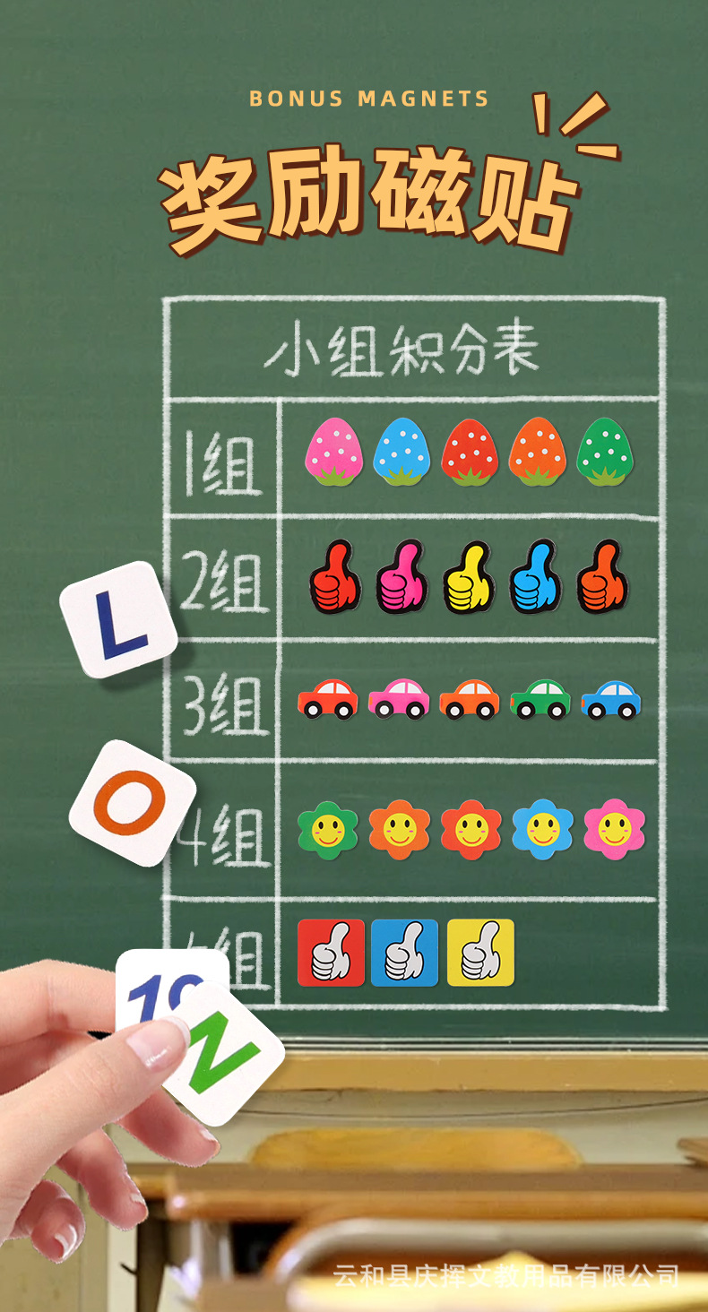 儿童奖励表扬冰箱贴英文数字教学黑板白板磁性贴小红花拇指软磁贴