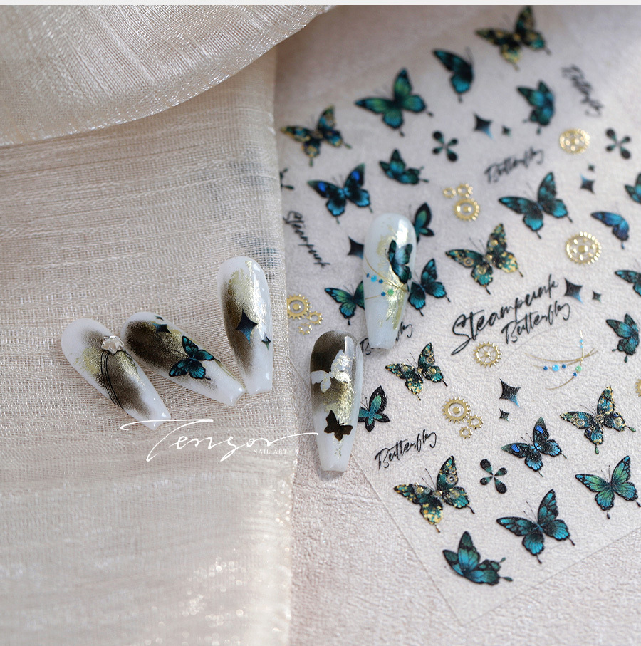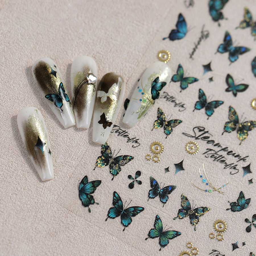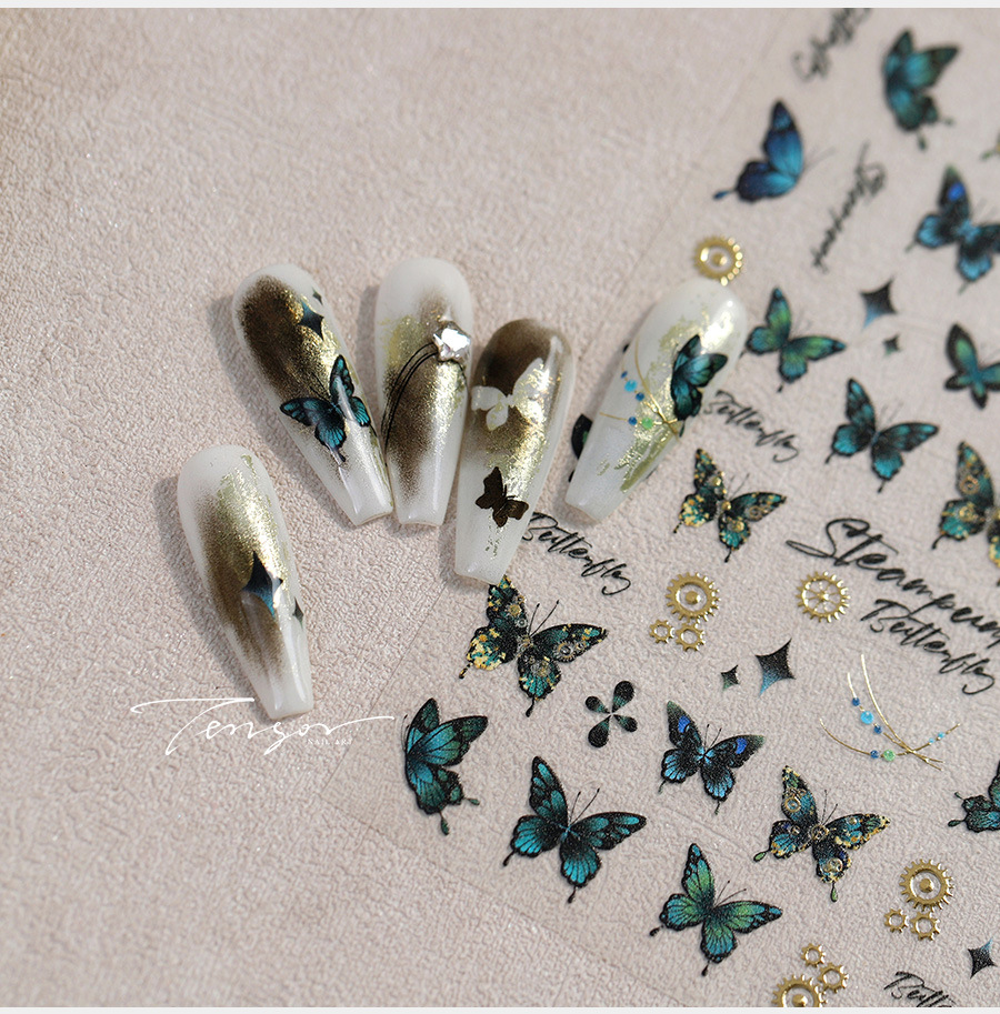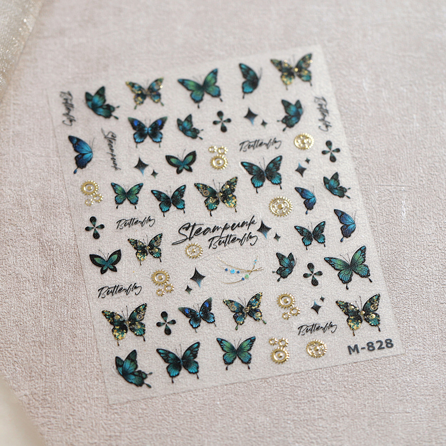 烫金爆款淡雅蝴蝶M-828背胶冰透极光玻璃碎美甲贴纸