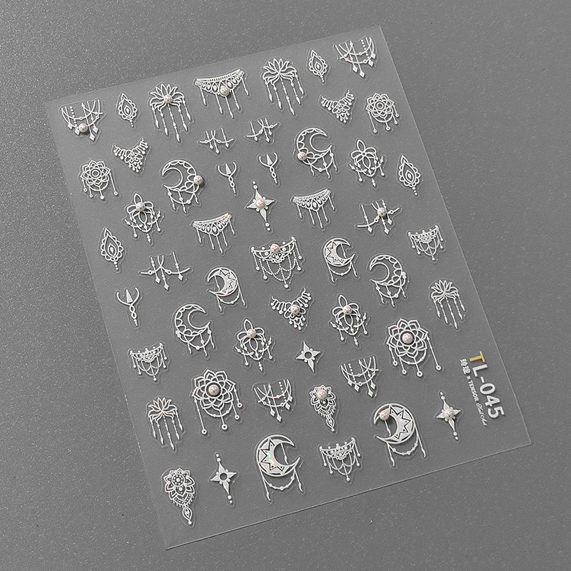 立体5D美甲贴纸花朵浮雕背胶指甲贴玲珑点钻系列