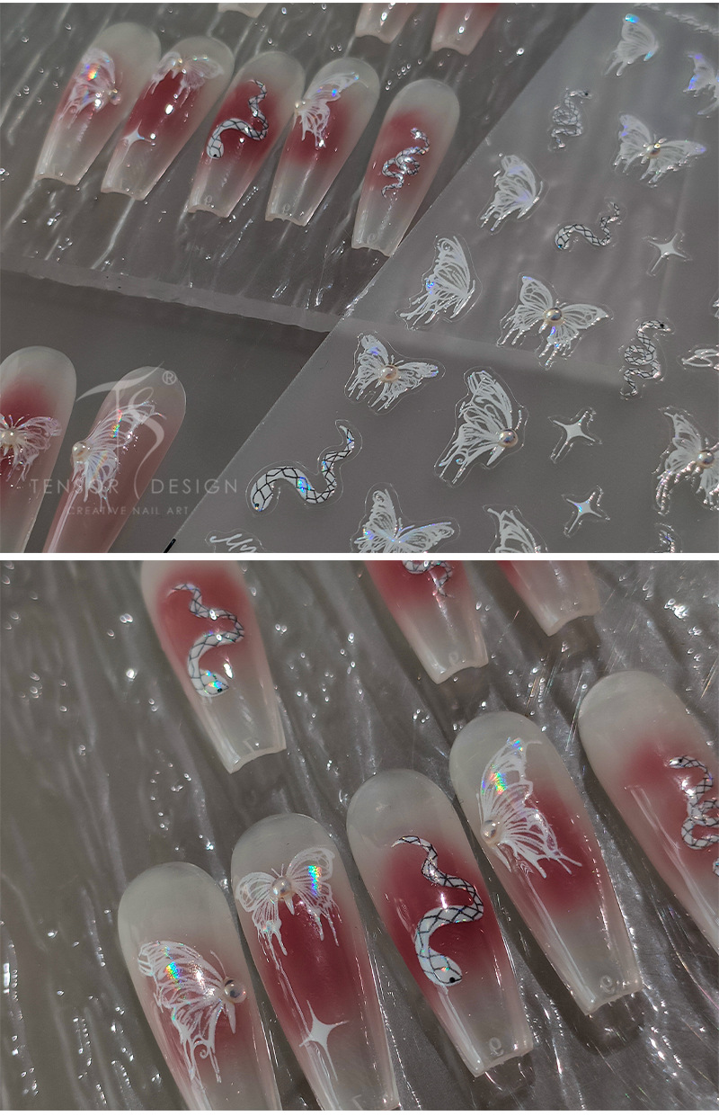 立体5D美甲贴纸蝴蝶浮雕背胶指甲贴玲珑系列