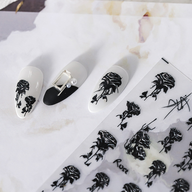 薄韧浮雕美甲贴薄透指甲贴指甲饰品山野玫瑰