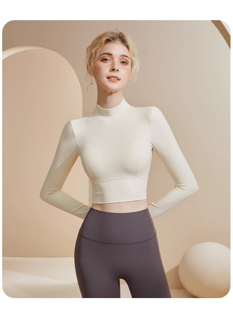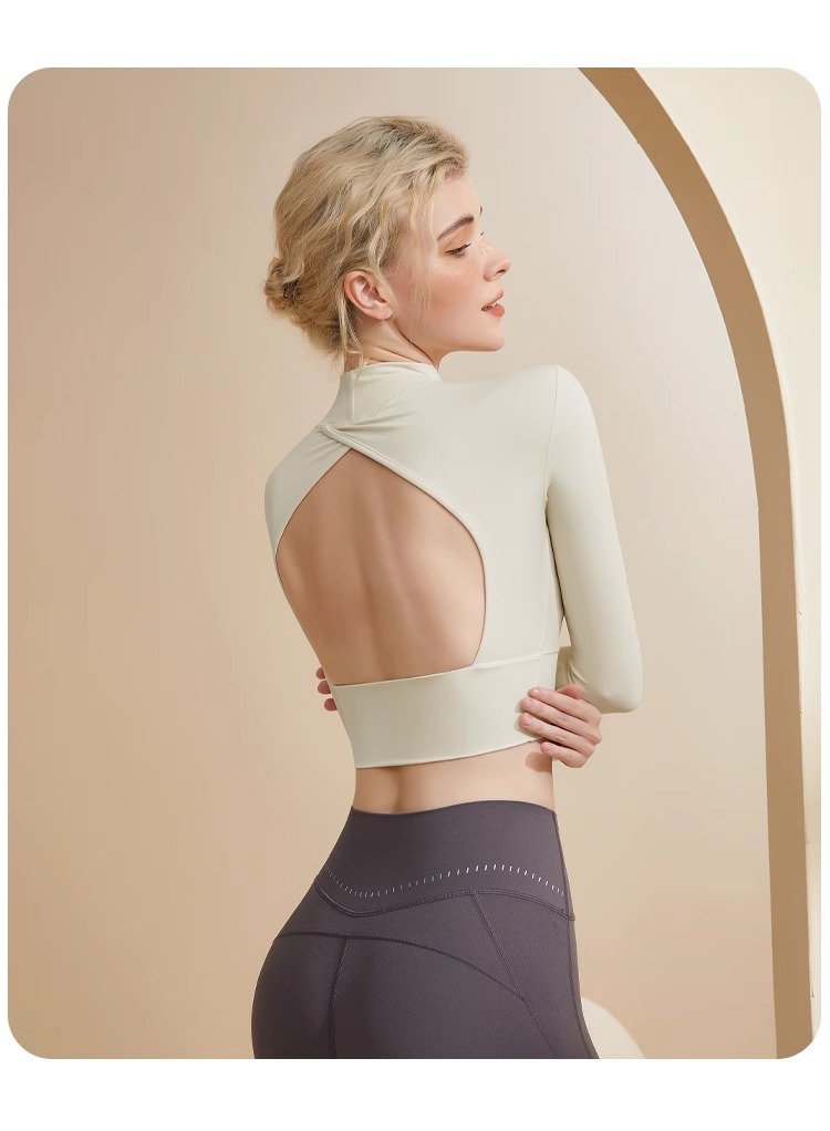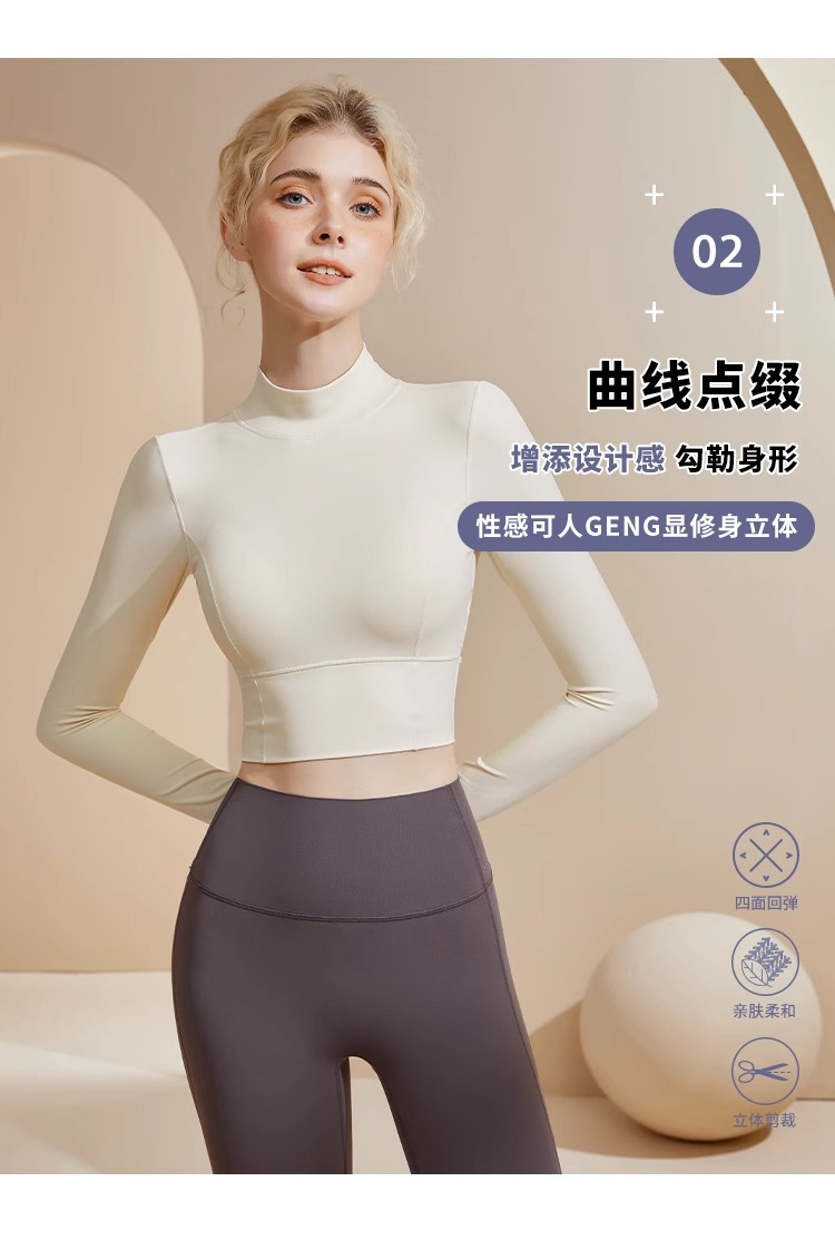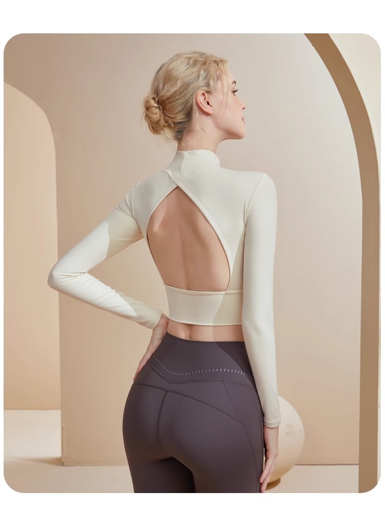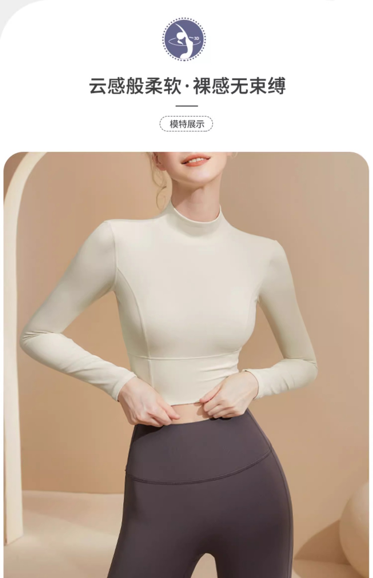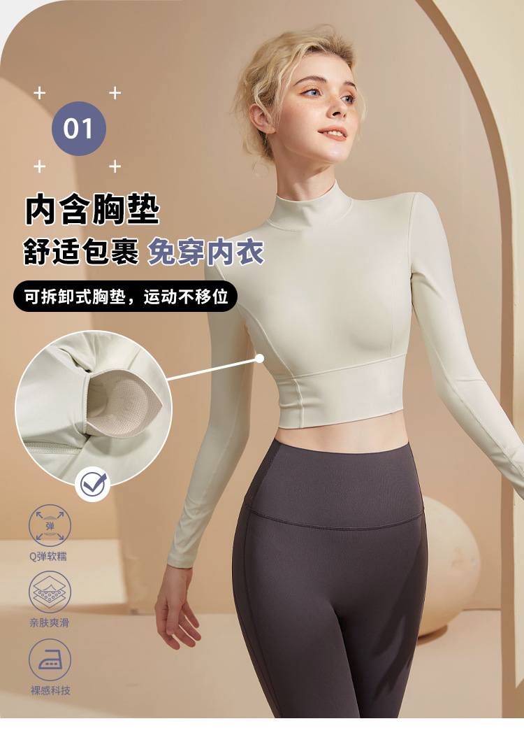 跨境美背含胸垫瑜伽服女高领显瘦运动上衣跑步普拉提健身服长袖秋
