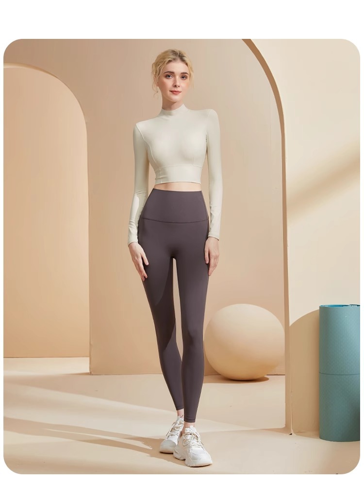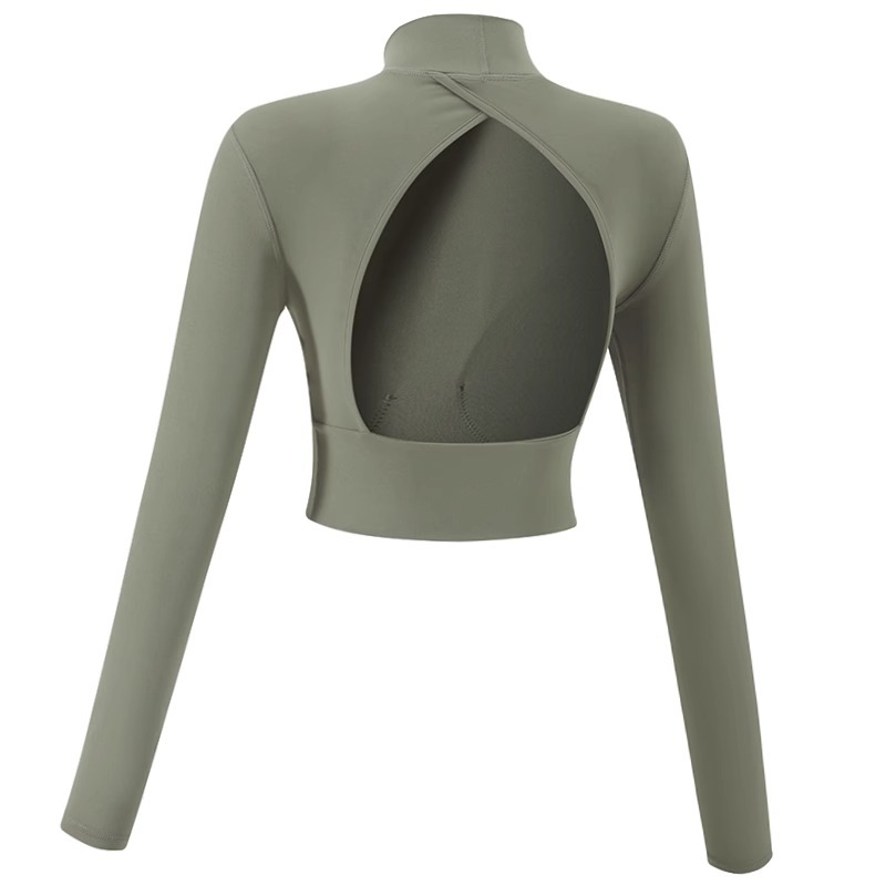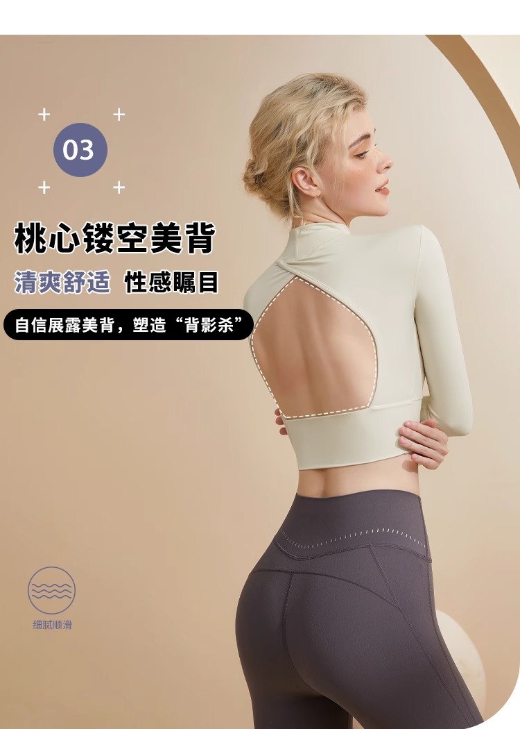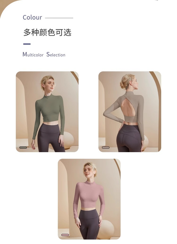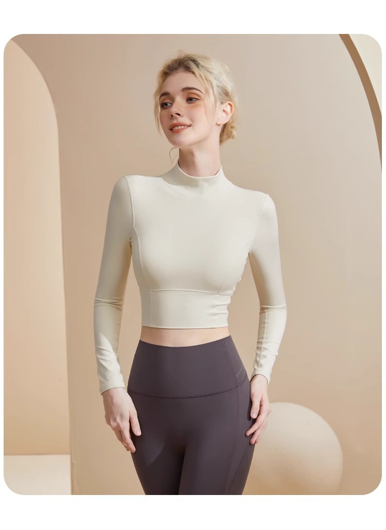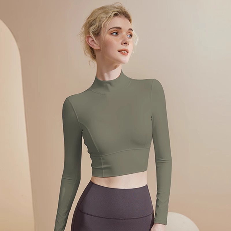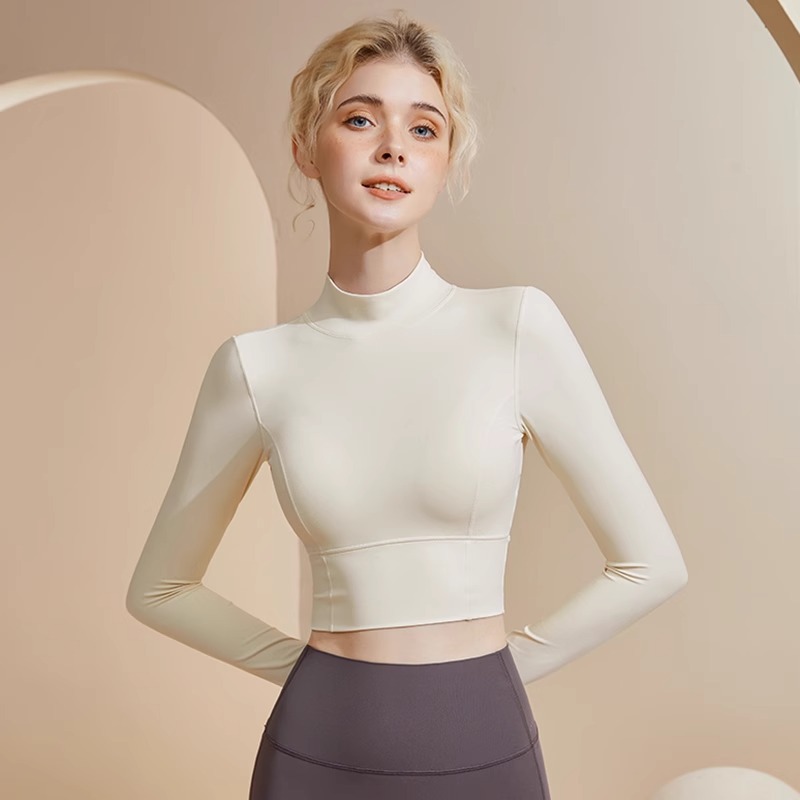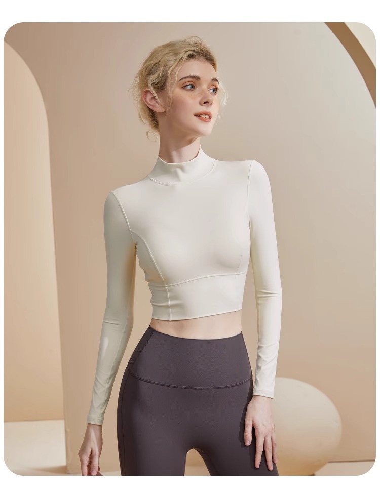 跨境美背含胸垫瑜伽服女高领显瘦运动上衣跑步普拉提健身服长袖秋
