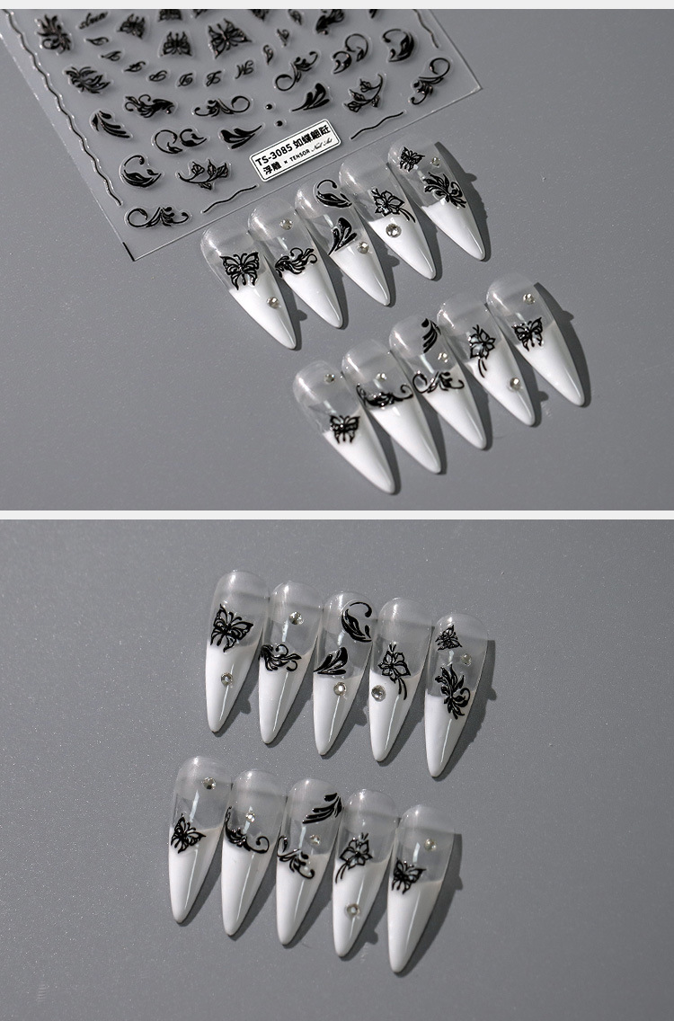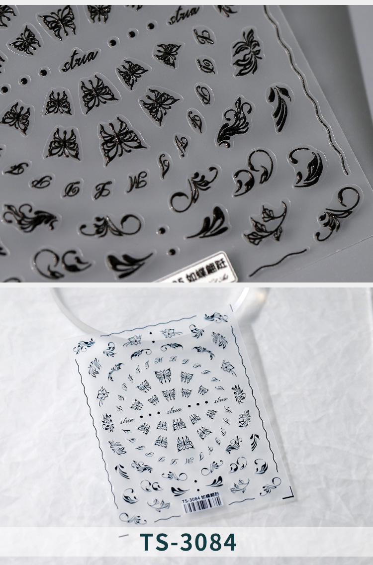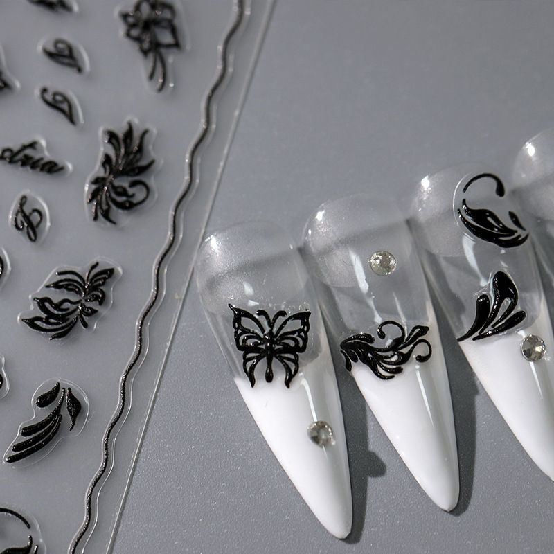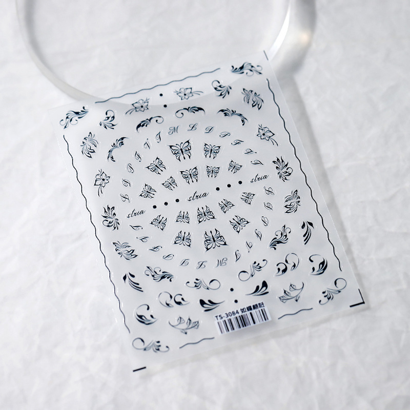 日系5D浮雕指甲贴pro磨砂薄透背胶薄韧贴纸如蝶翩跹