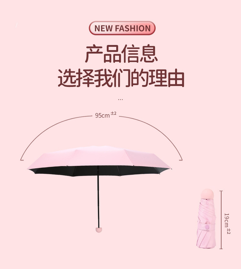 五折迷你清冷感女士便携太阳伞女黑胶防晒晴雨伞两用胶囊雨伞定制