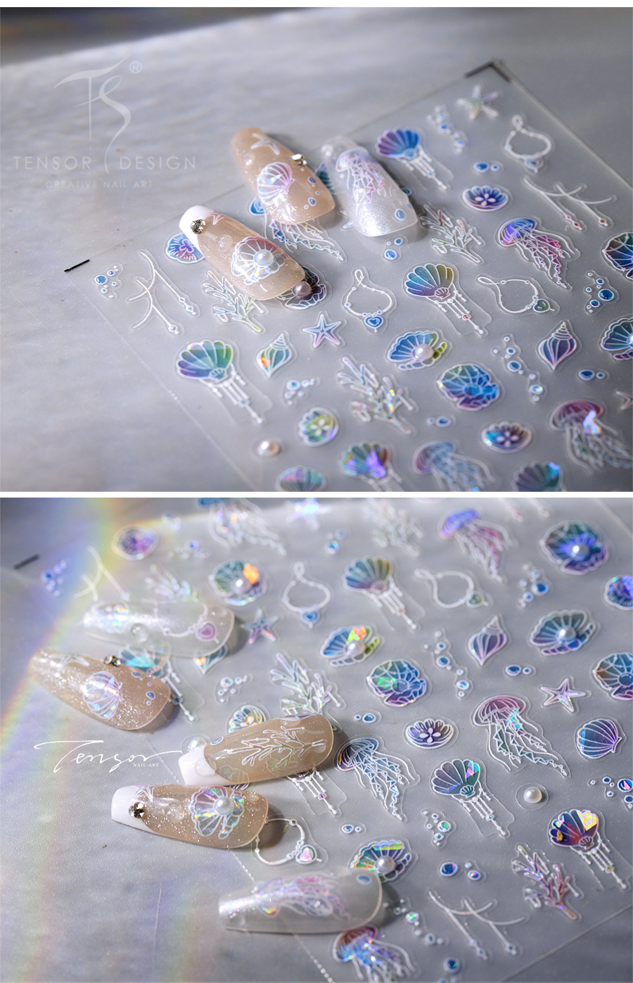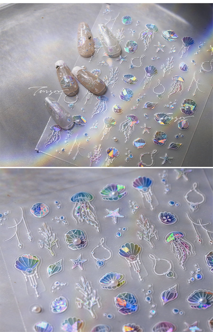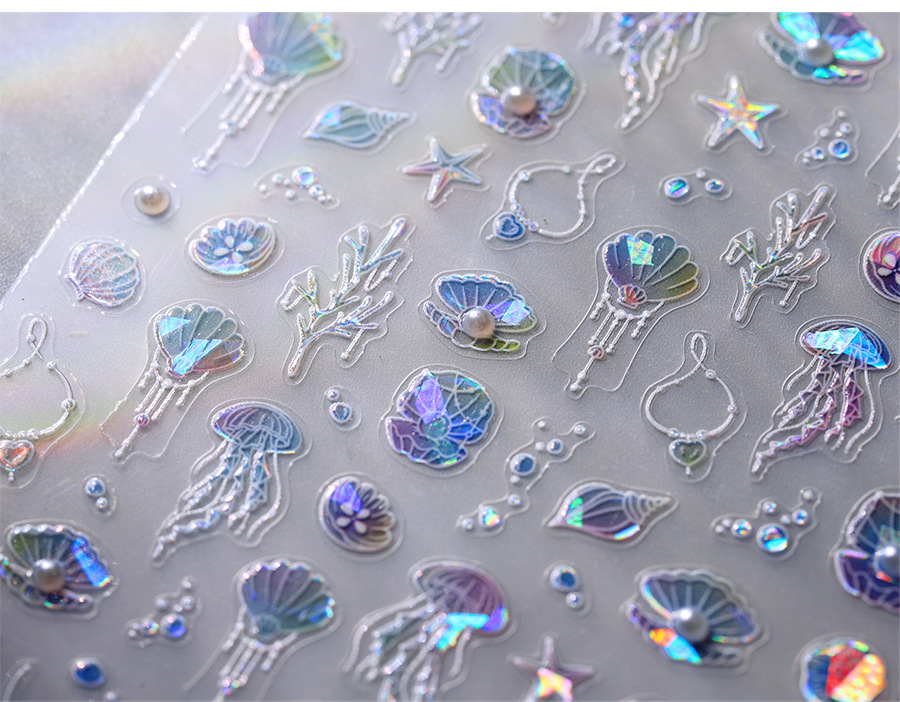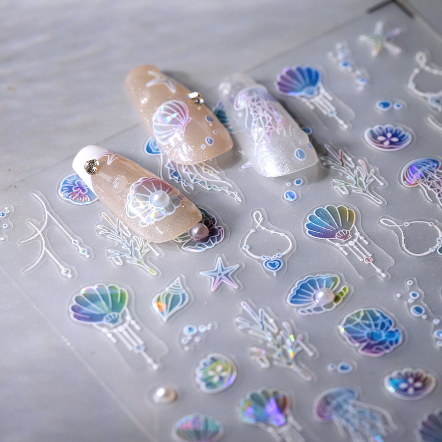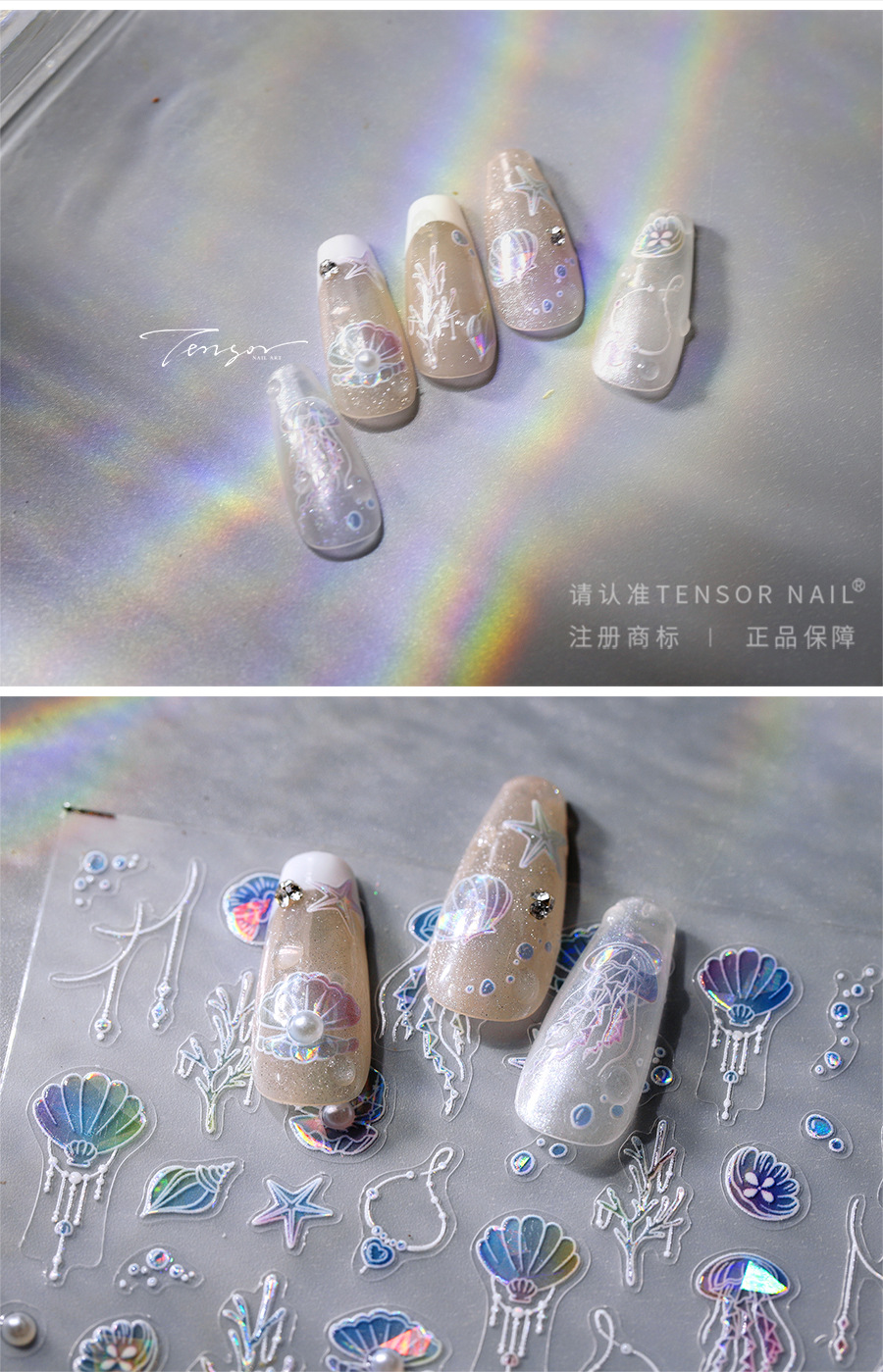 立体美甲贴纸ins贝壳浮雕背胶指甲贴玲珑点钻系列