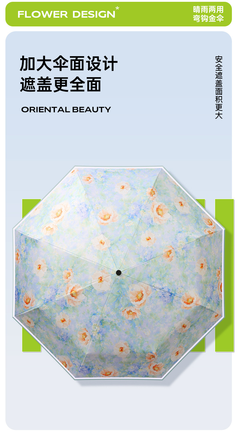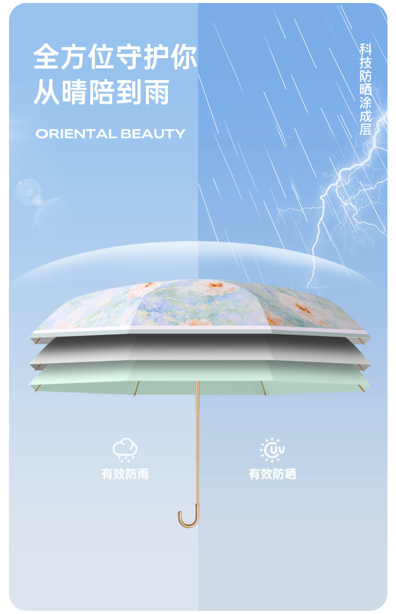 新款金弯钩三折彩胶防晒伞晴雨两用女士轻巧便携折叠太阳伞批发