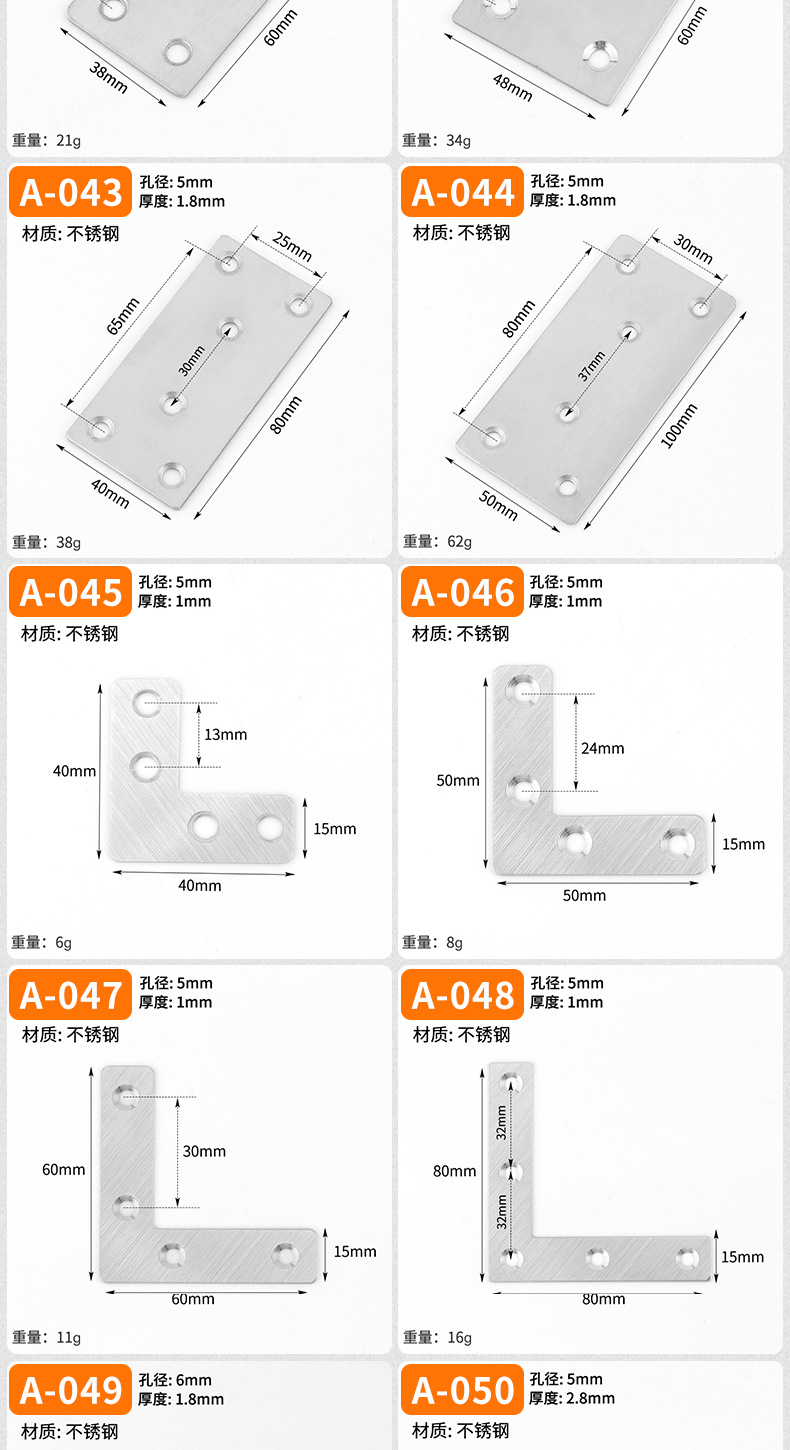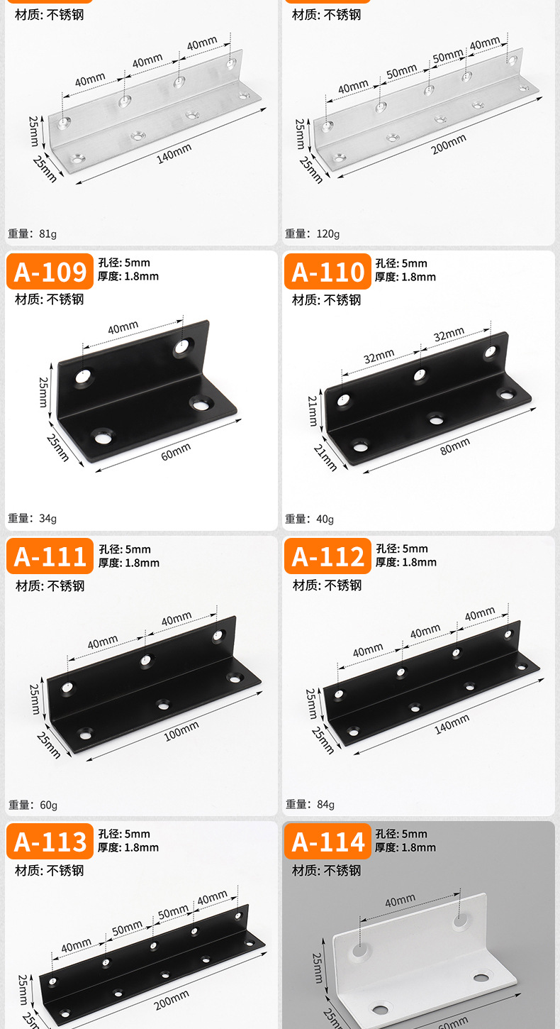 不锈钢角码90度直角固定器角铁l型三角铁支架层板托五金连接件片