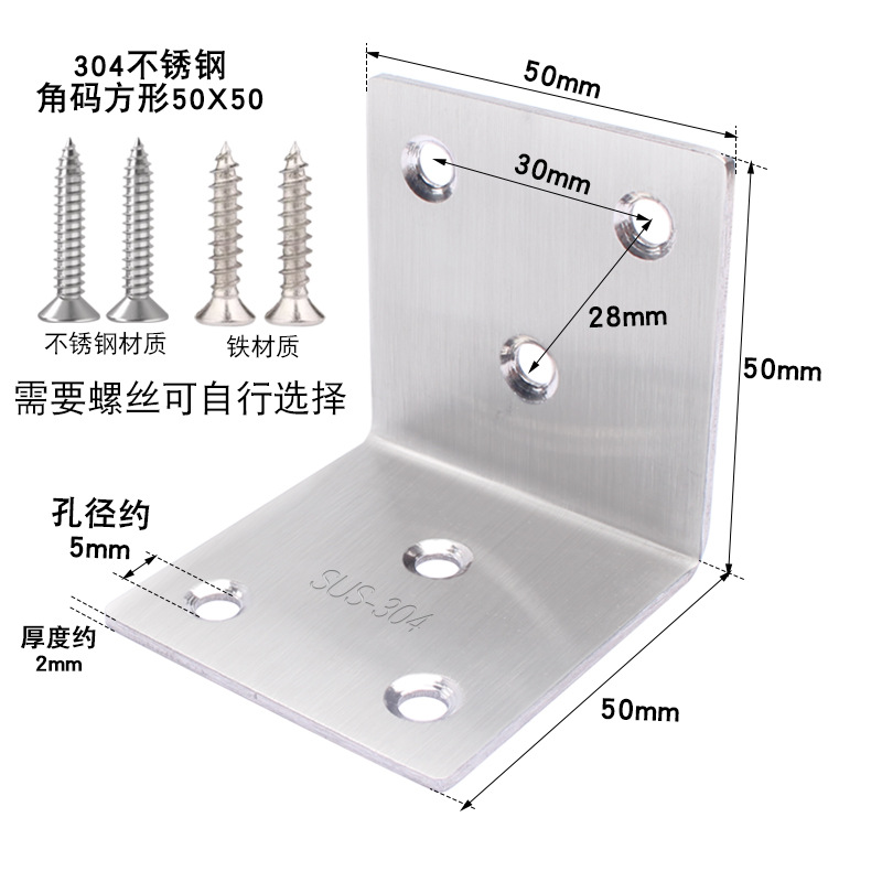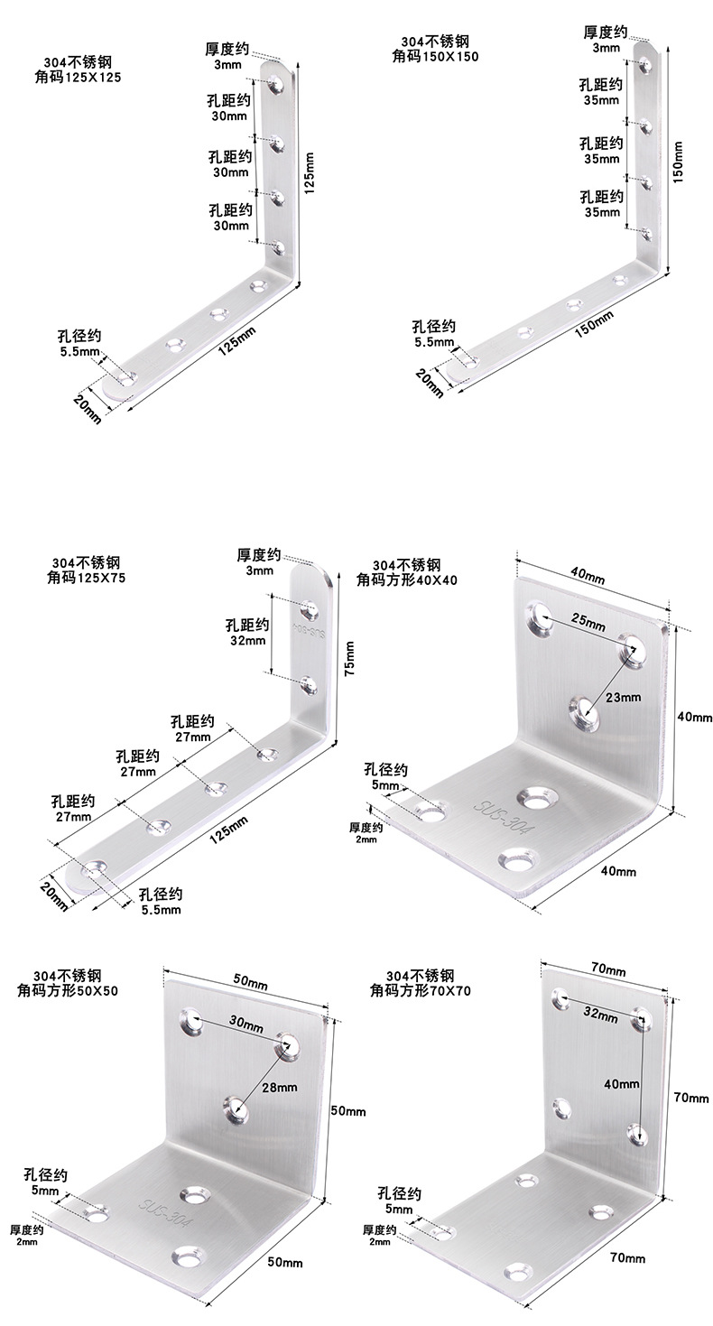 304不锈钢角码90度直角固定器三角铁支架连接件片加固五金l型t型