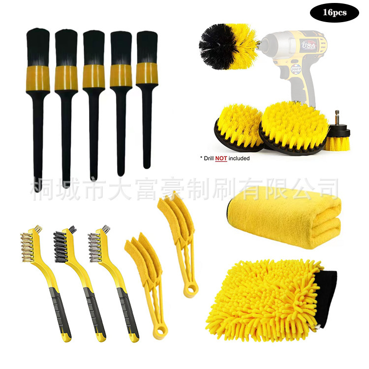 亚马逊热卖电钻刷20件套DrillBrush汽车清洁洗车工具pp黄色