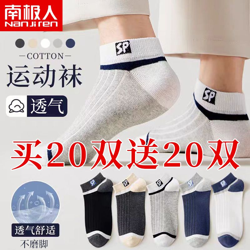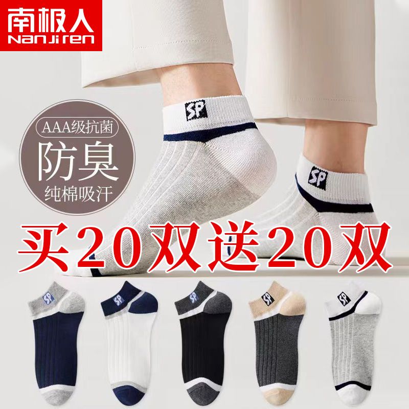 南极人【工厂批发】袜子男士浅口短袜吸汗防臭低帮男款防臭船袜