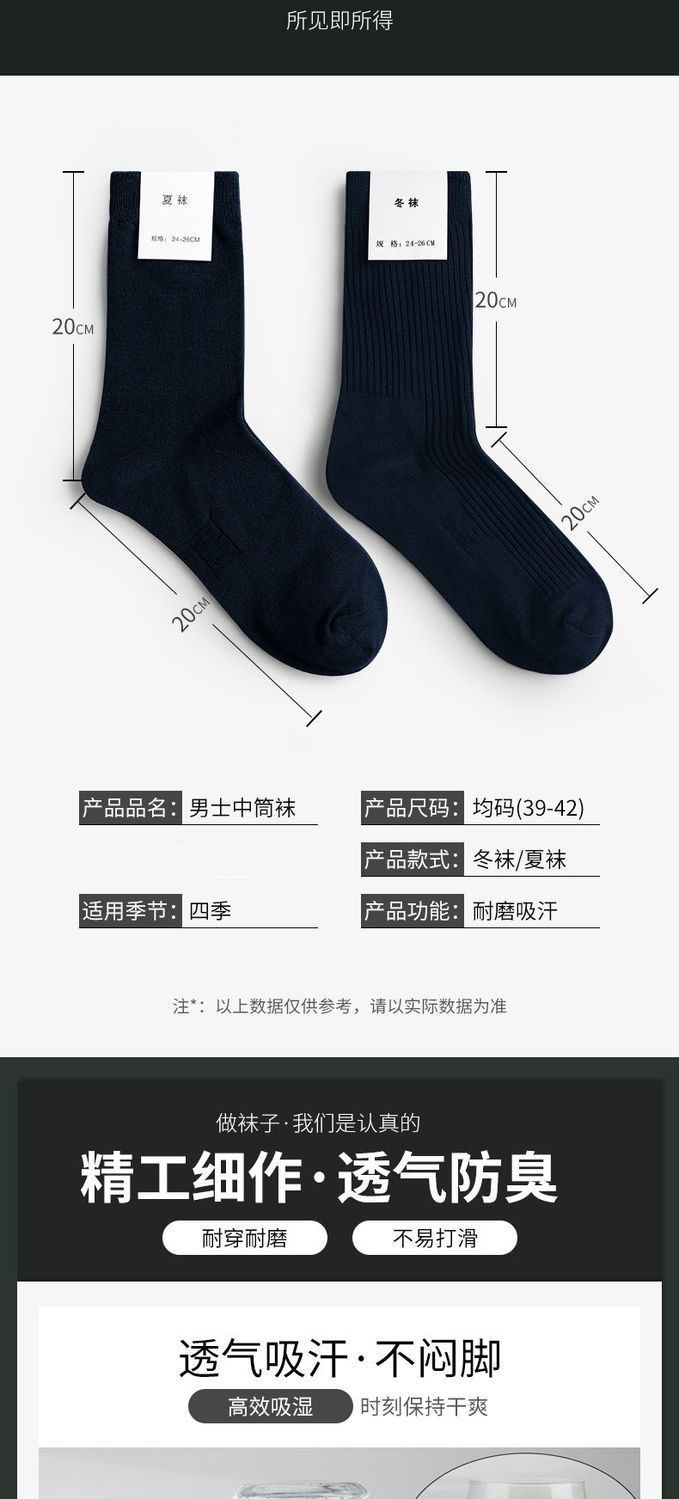 运动袜子男制新式袜子秋冬袜防臭耐磨中筒吸汗训练袜黑藏蓝军训袜