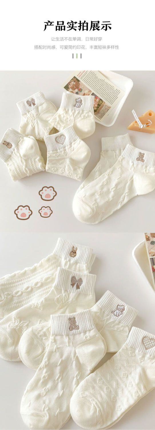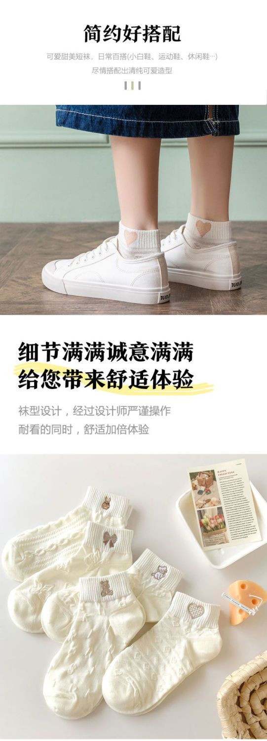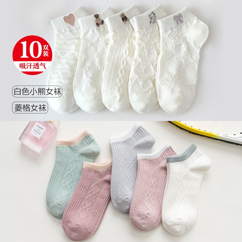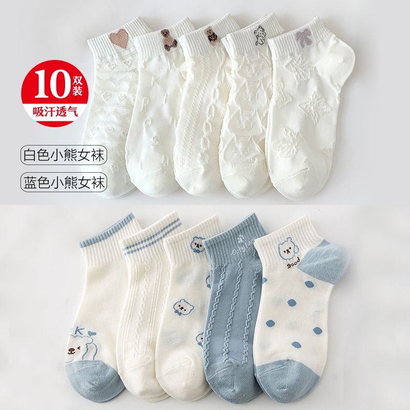 袜子女短袜低帮透气潮流女袜子夏天白色小熊韩版春夏季短筒船袜女