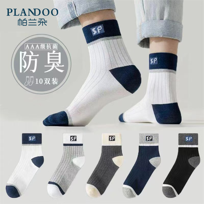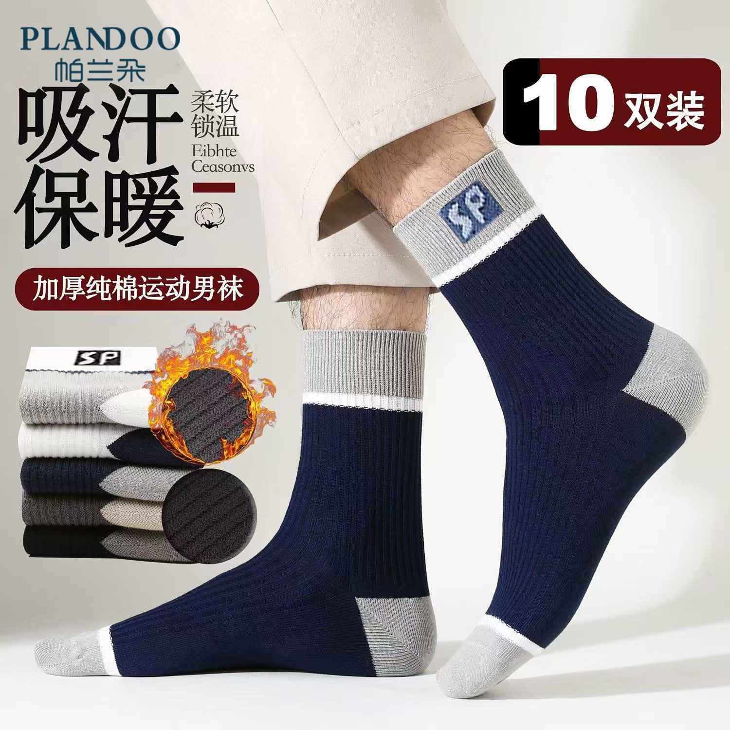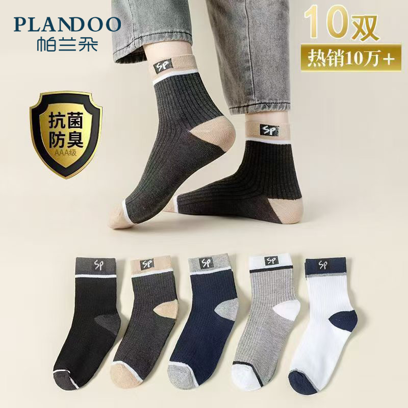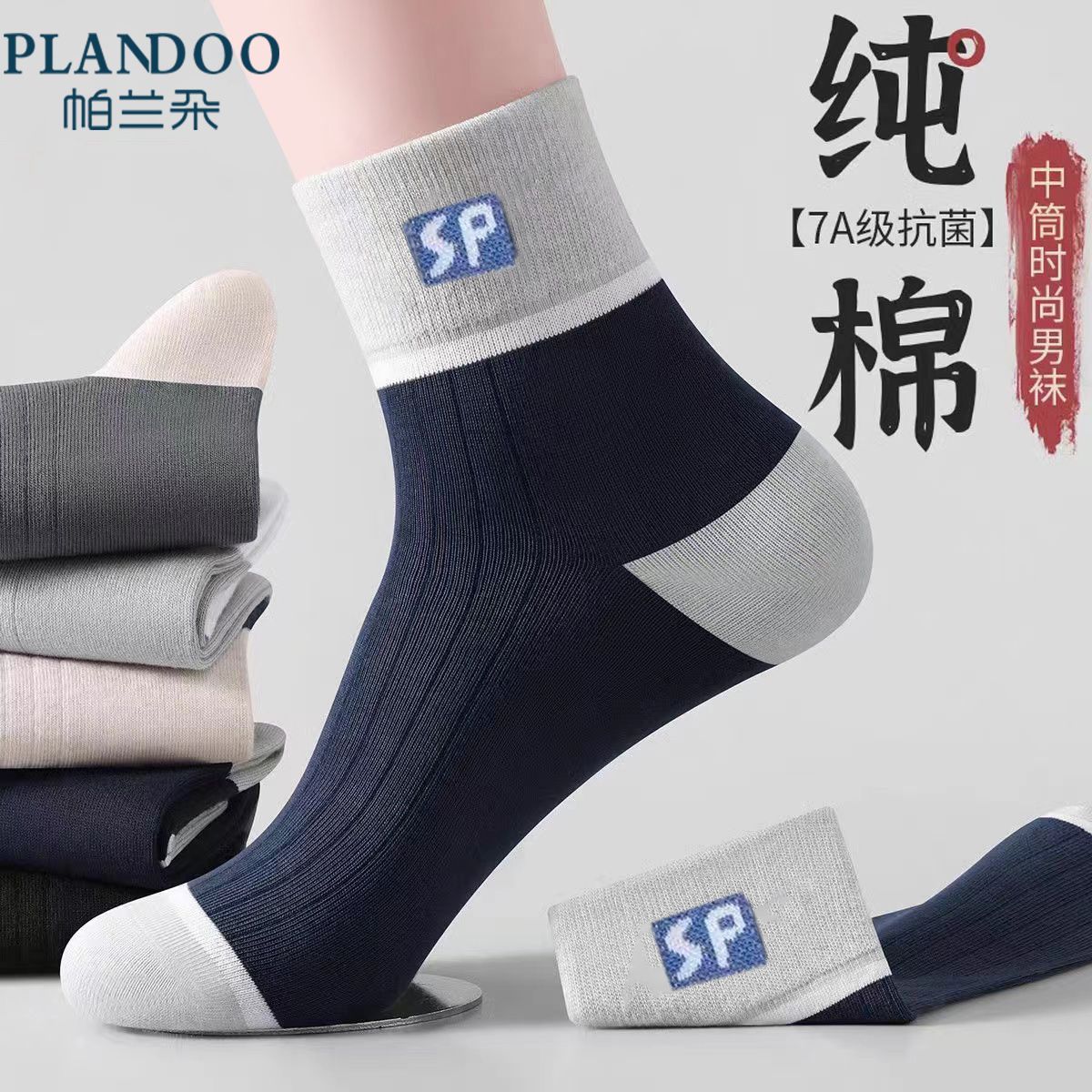 帕兰朵7A舒适袜子男士100%纯棉秋冬款舒适防臭吸汗中筒袜运动透气