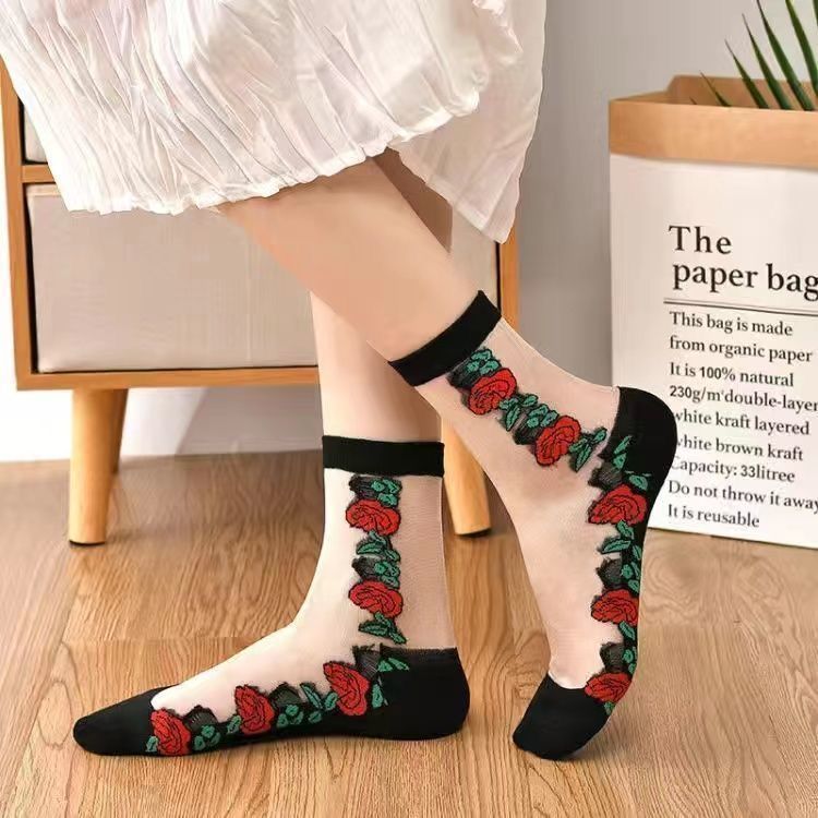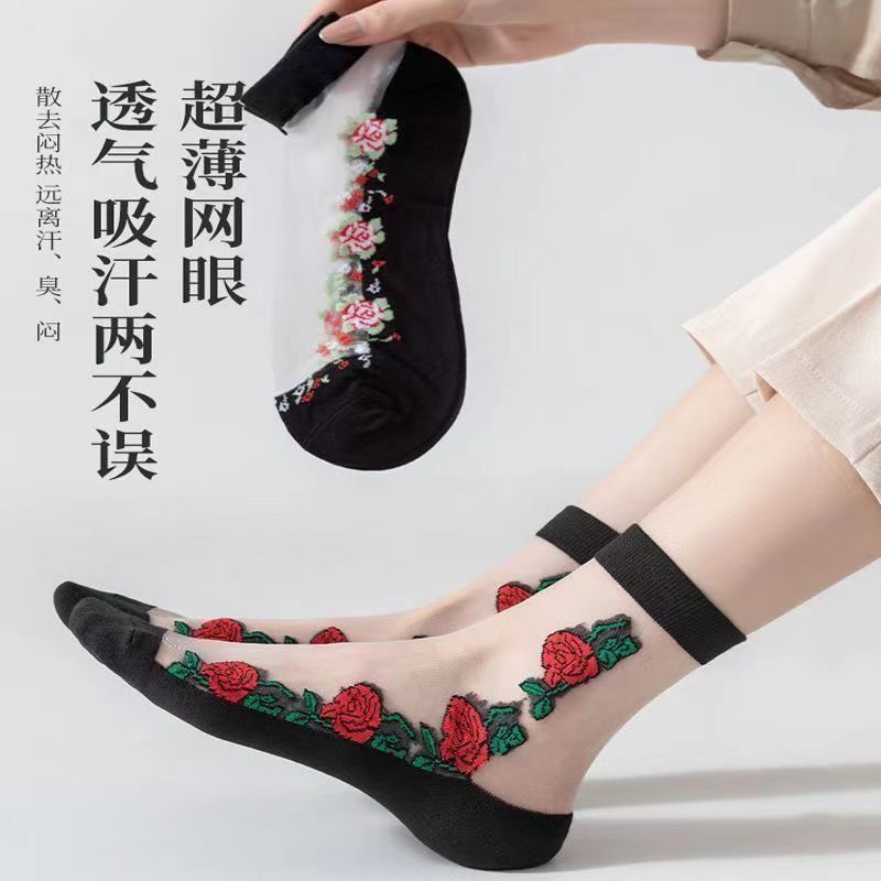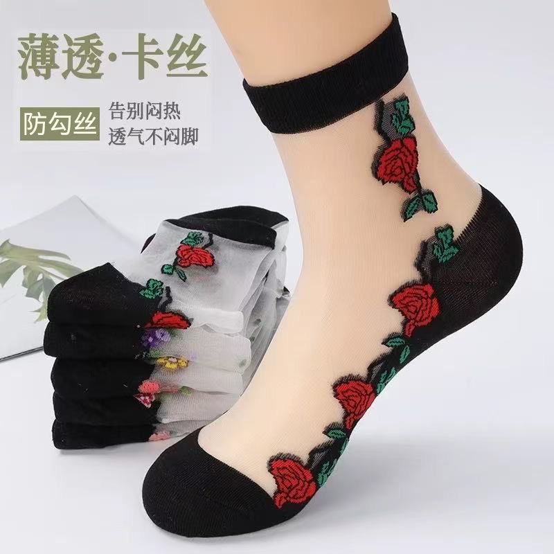 5双袜子女春夏季百搭薄款水晶袜防滑透气中筒袜跳舞袜耐磨复古袜
