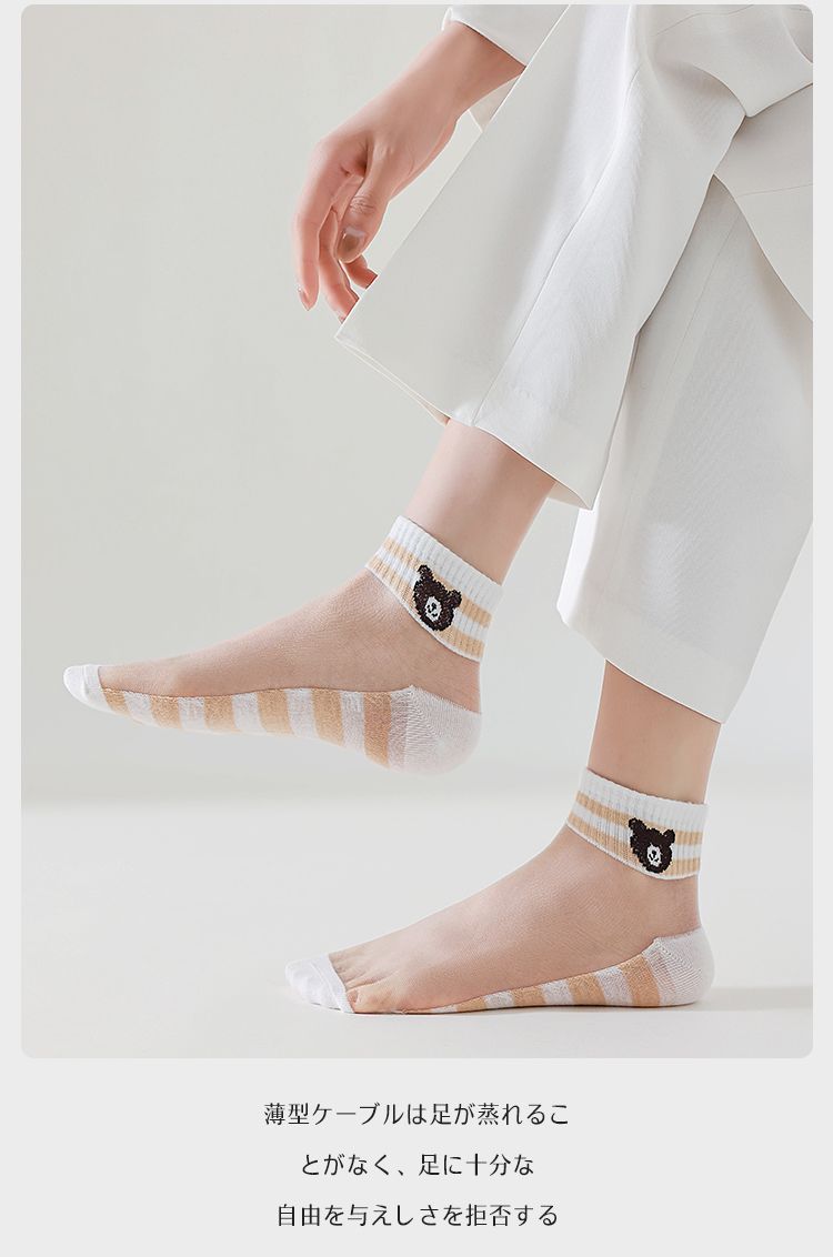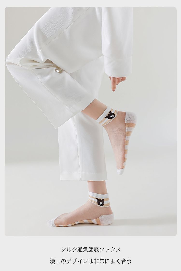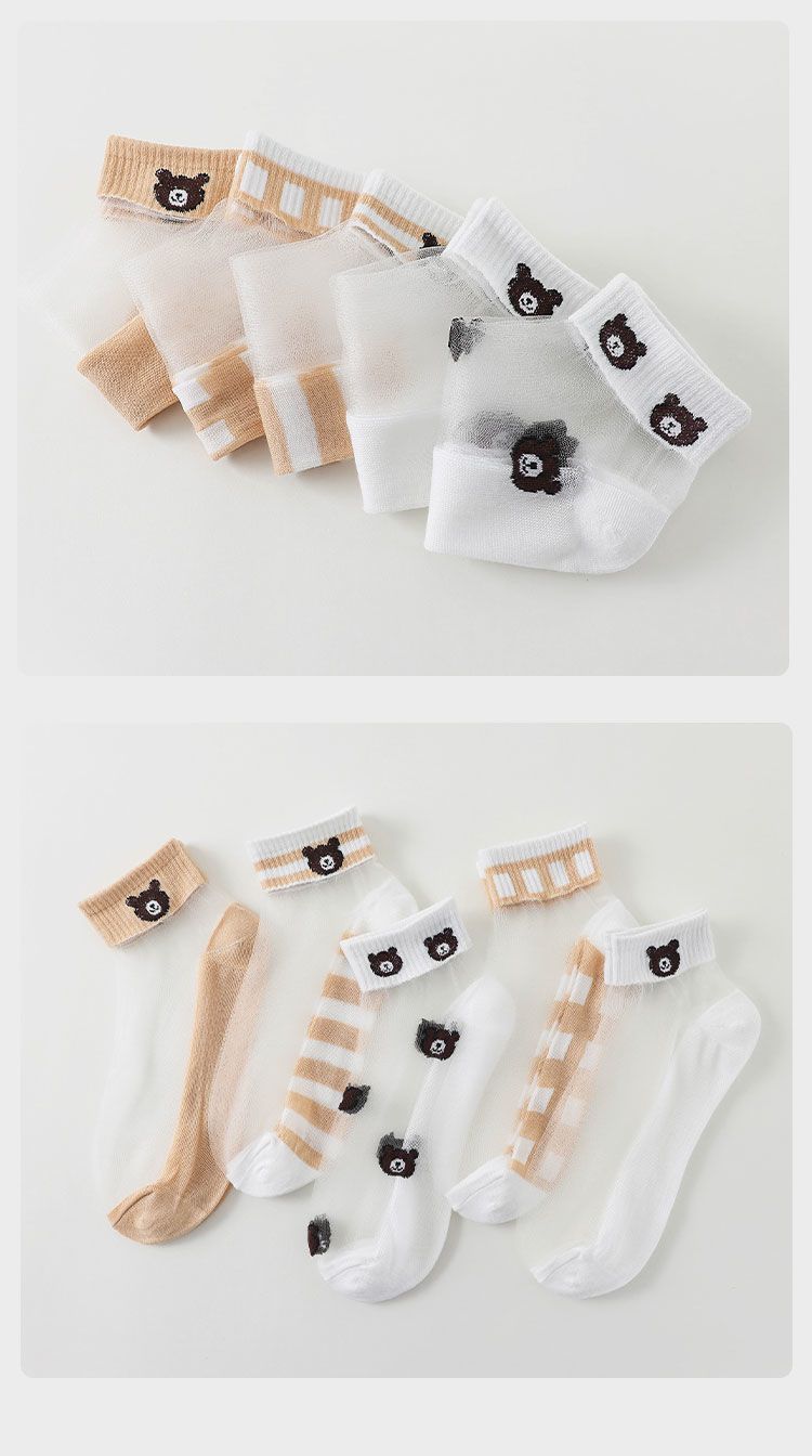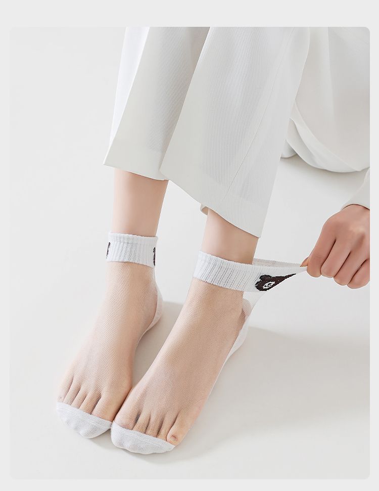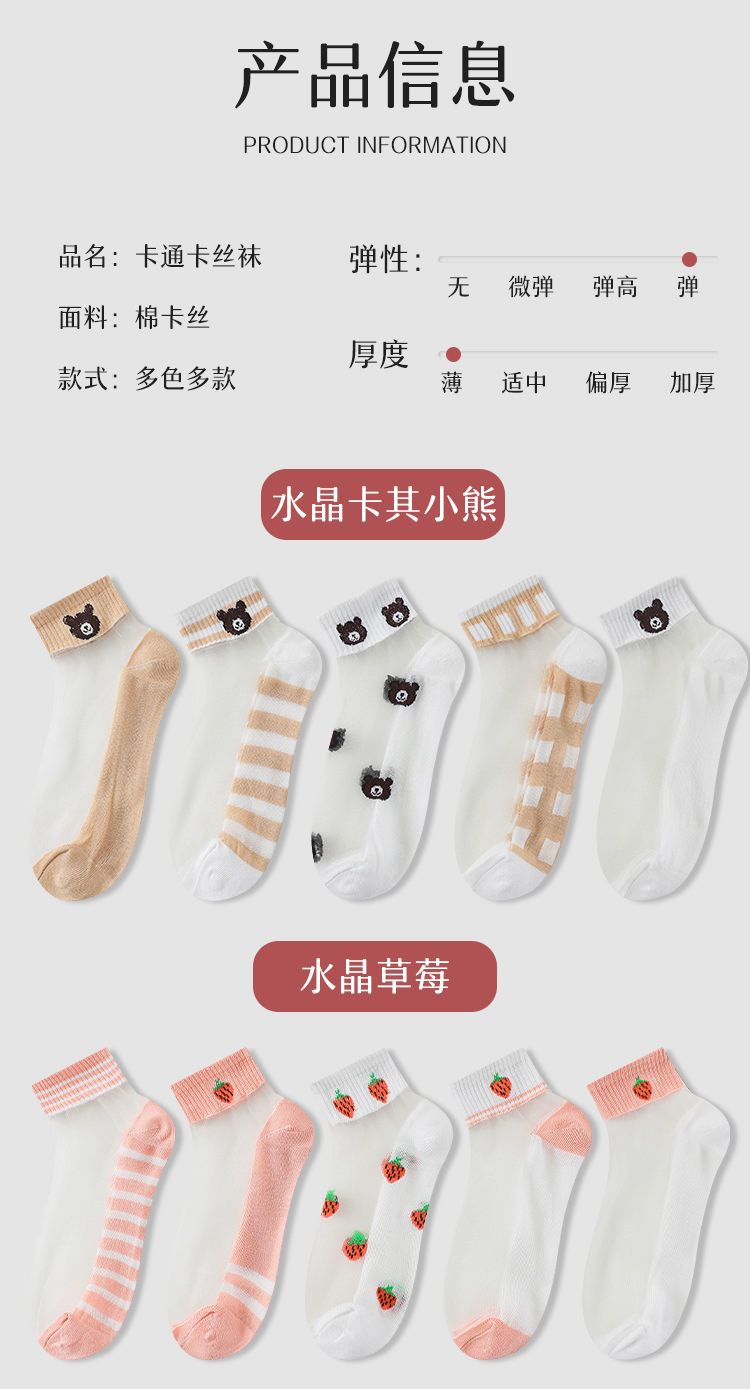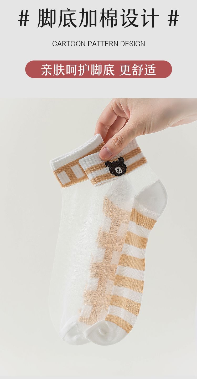 10 pairs of bear socks for women ins fashionable socks net red spring summer glass stockings thin crystal card stockings boat socks for women