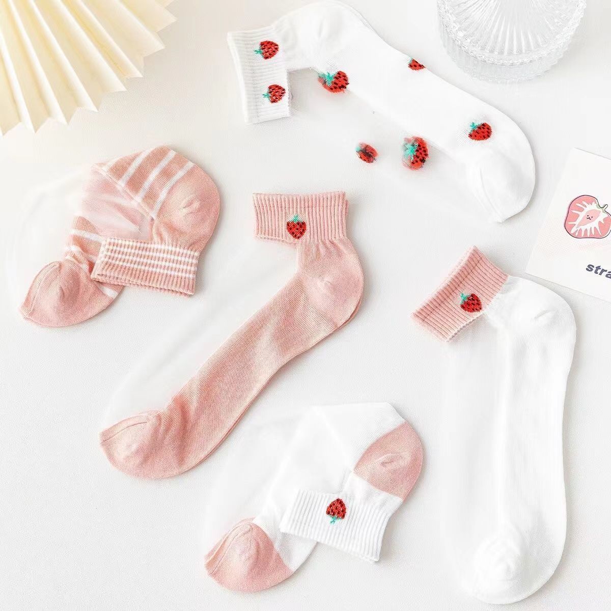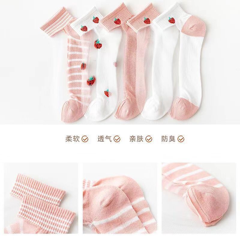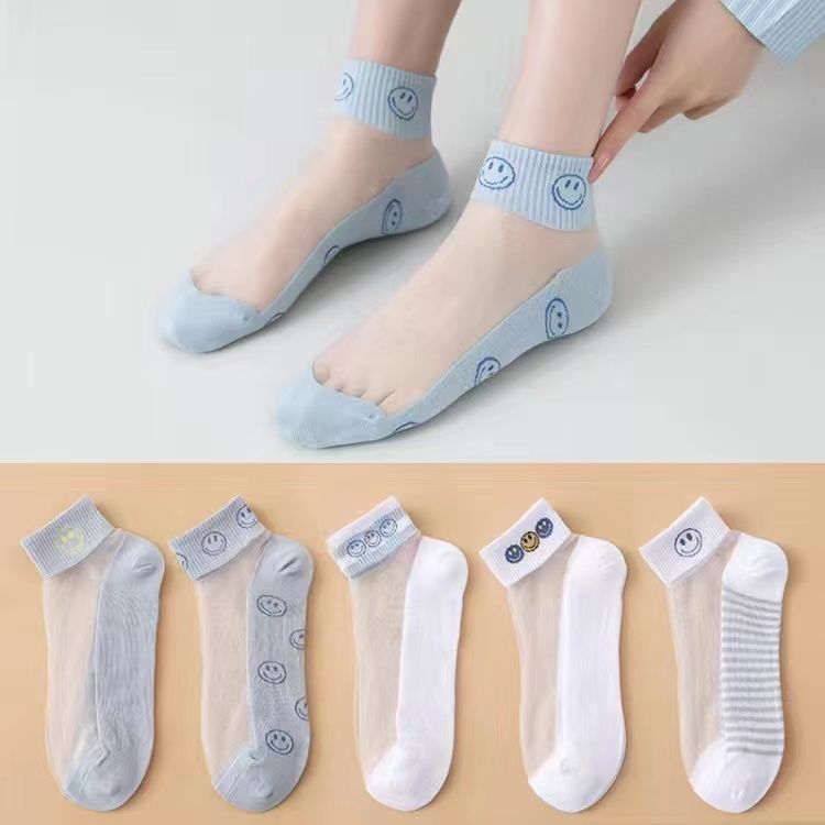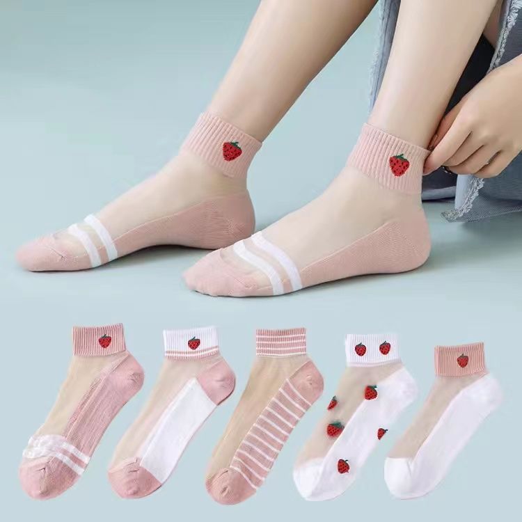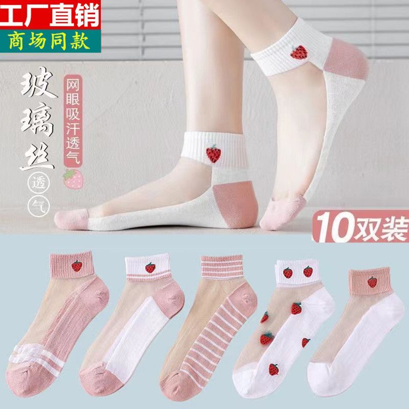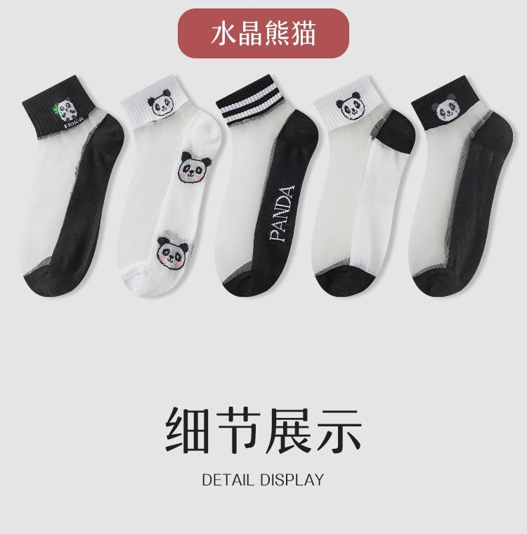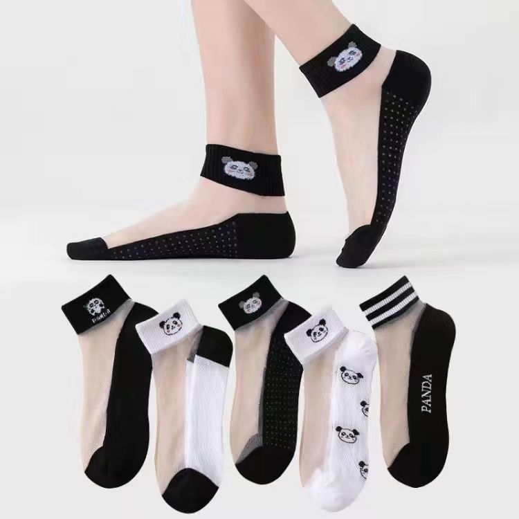 10 pairs of bear socks for women ins fashionable socks net red spring summer glass stockings thin crystal card stockings boat socks for women