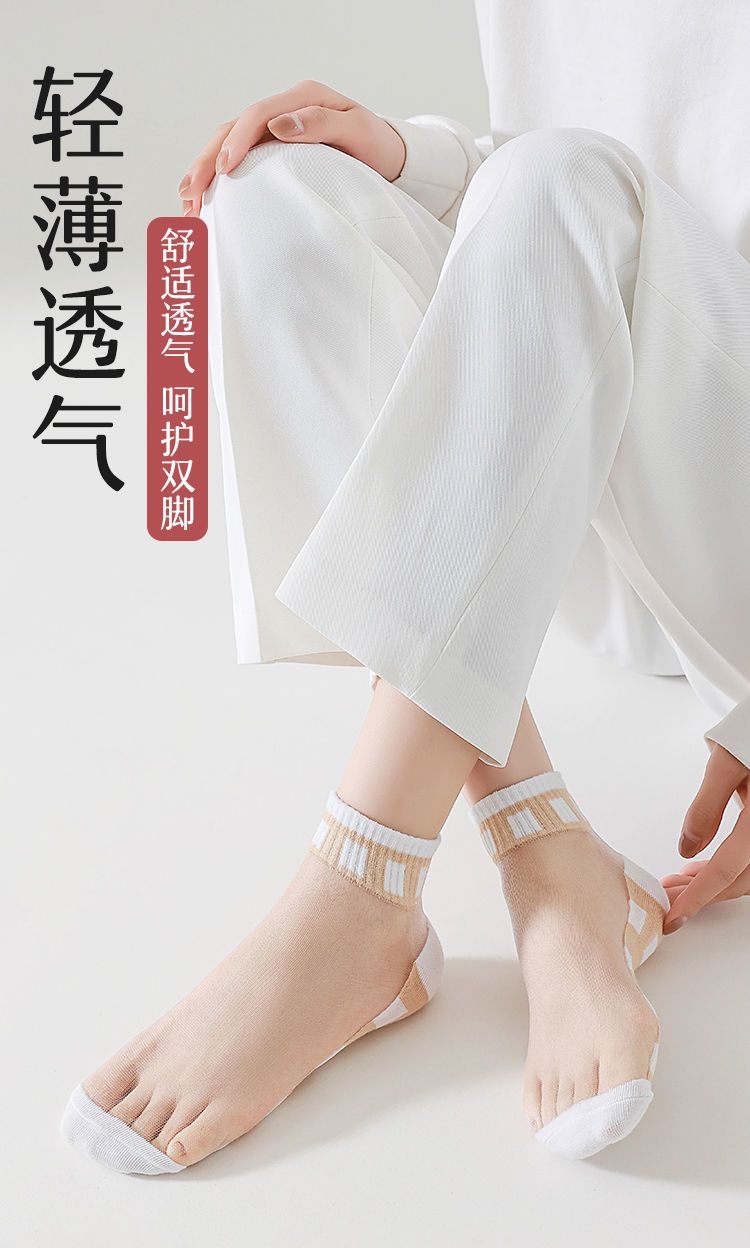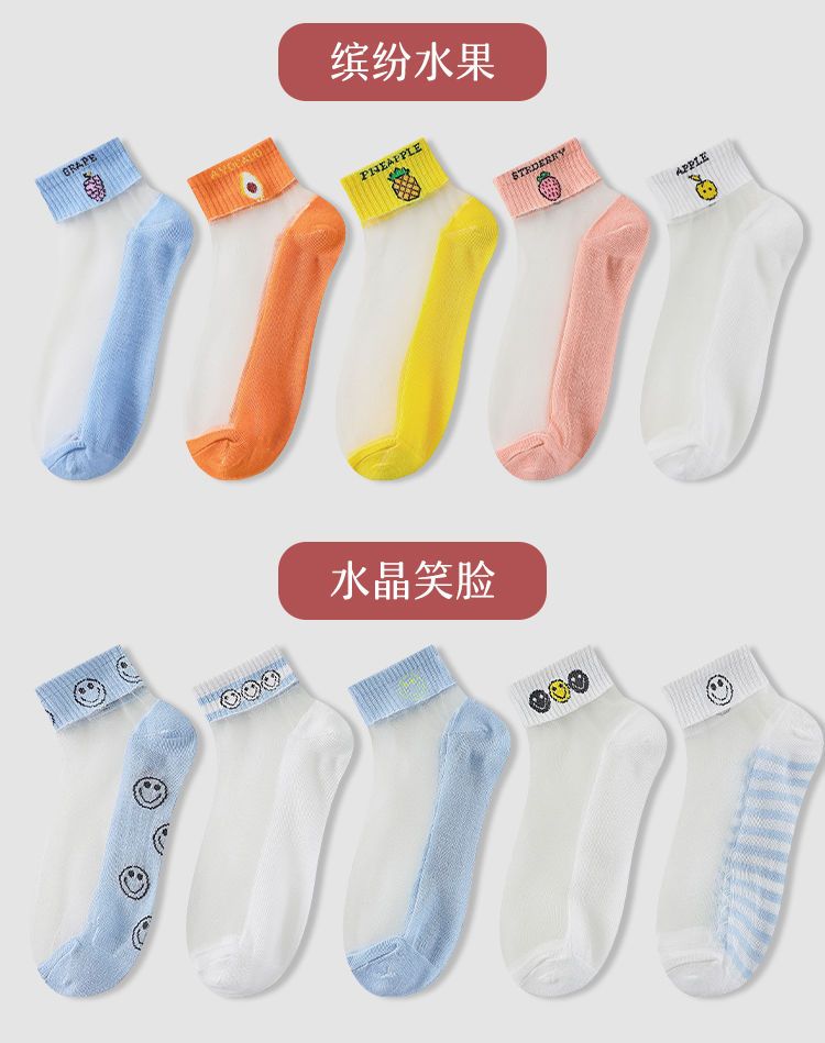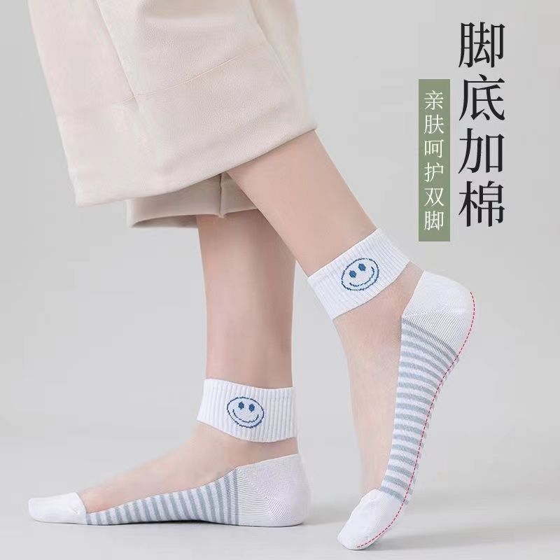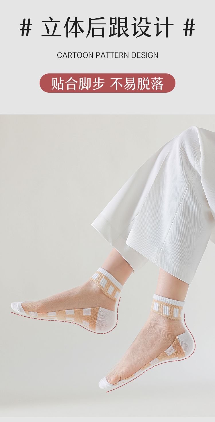 10双小熊袜子女ins潮短袜网红春夏季玻璃丝袜薄水晶卡丝袜船袜女