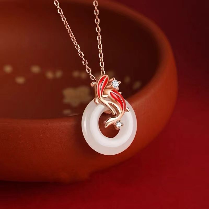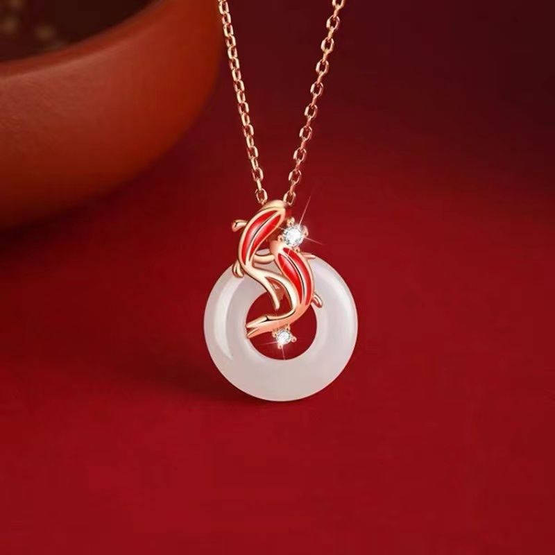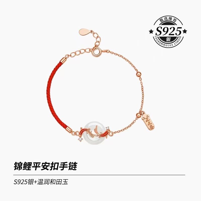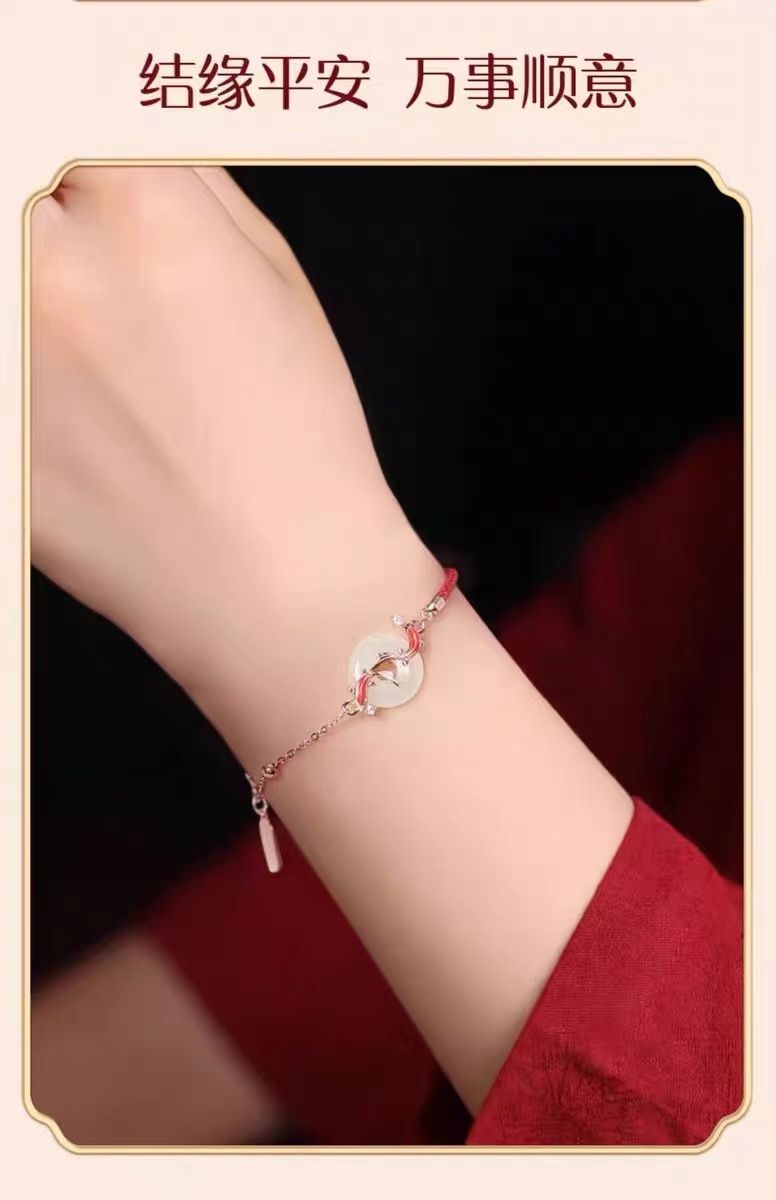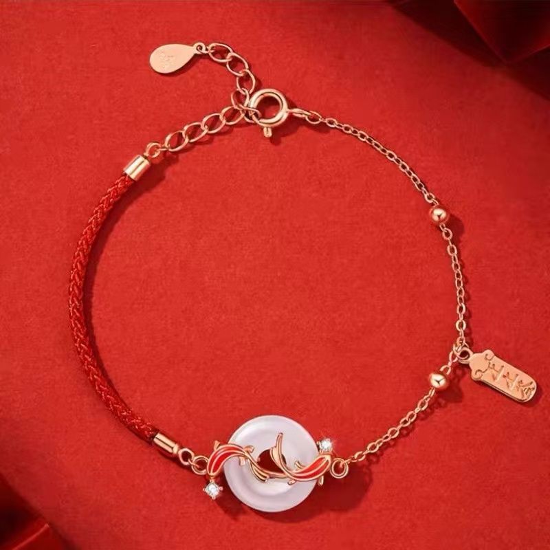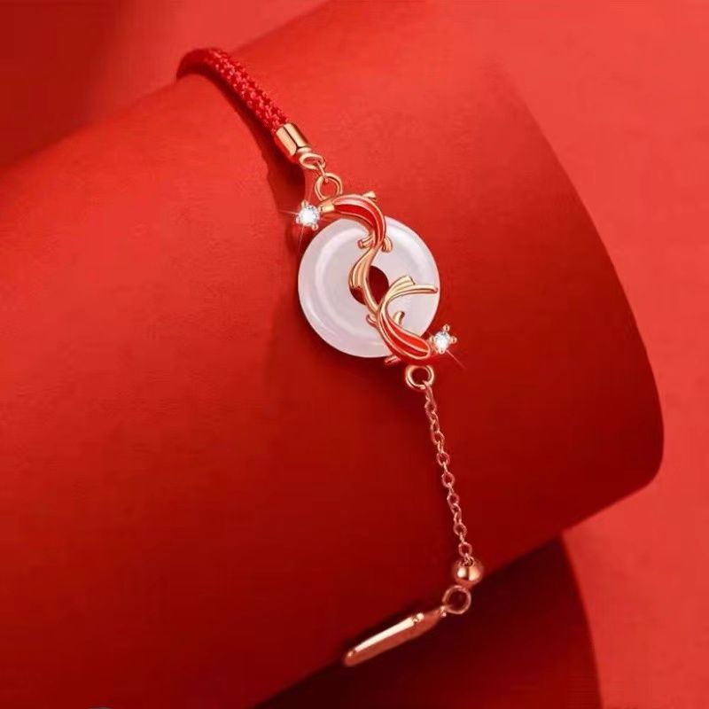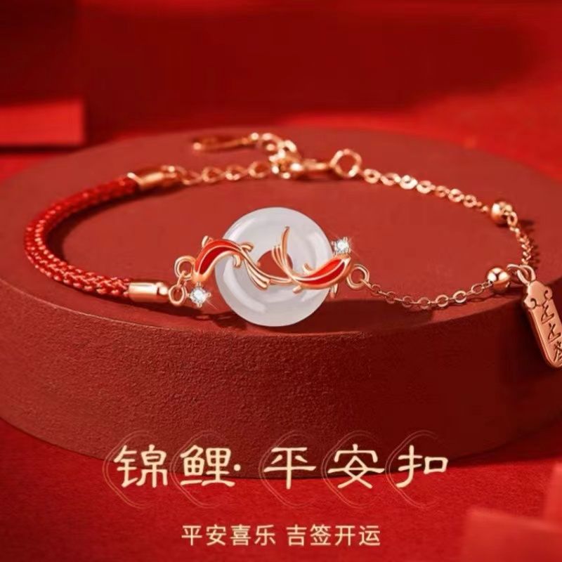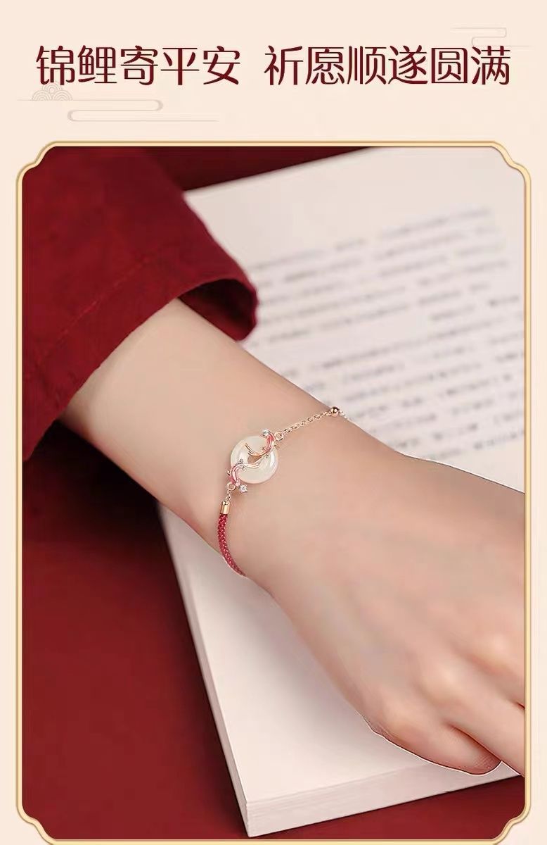 仿和田玉锦鲤平安扣手链红手绳上上签好寓意喜庆女转手链女礼物